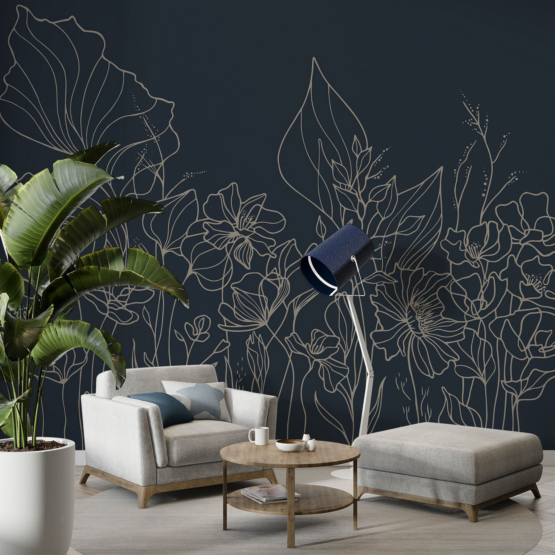 Transform any wall into a serene garden with this stunning “Wall Murals Line Drawing of Flowers.” Picture it—imagine waking up each day to a delicate dance of plants sketched in soft lines, whispering elegance with every glance. The dark background creates a cozy vibe, making it perfect for both living rooms and dreamy bedrooms. It’s like bringing a piece of art you can lean against and sigh over. Friends might just pause mid-sentence, captivated by its charm, perhaps thinking about their own decorating dilemmas. A touch of nature without the watering can? Yes, please. Perfect for those who appreciate uniqueness in simplicity. Go ahead, let your walls bloom!