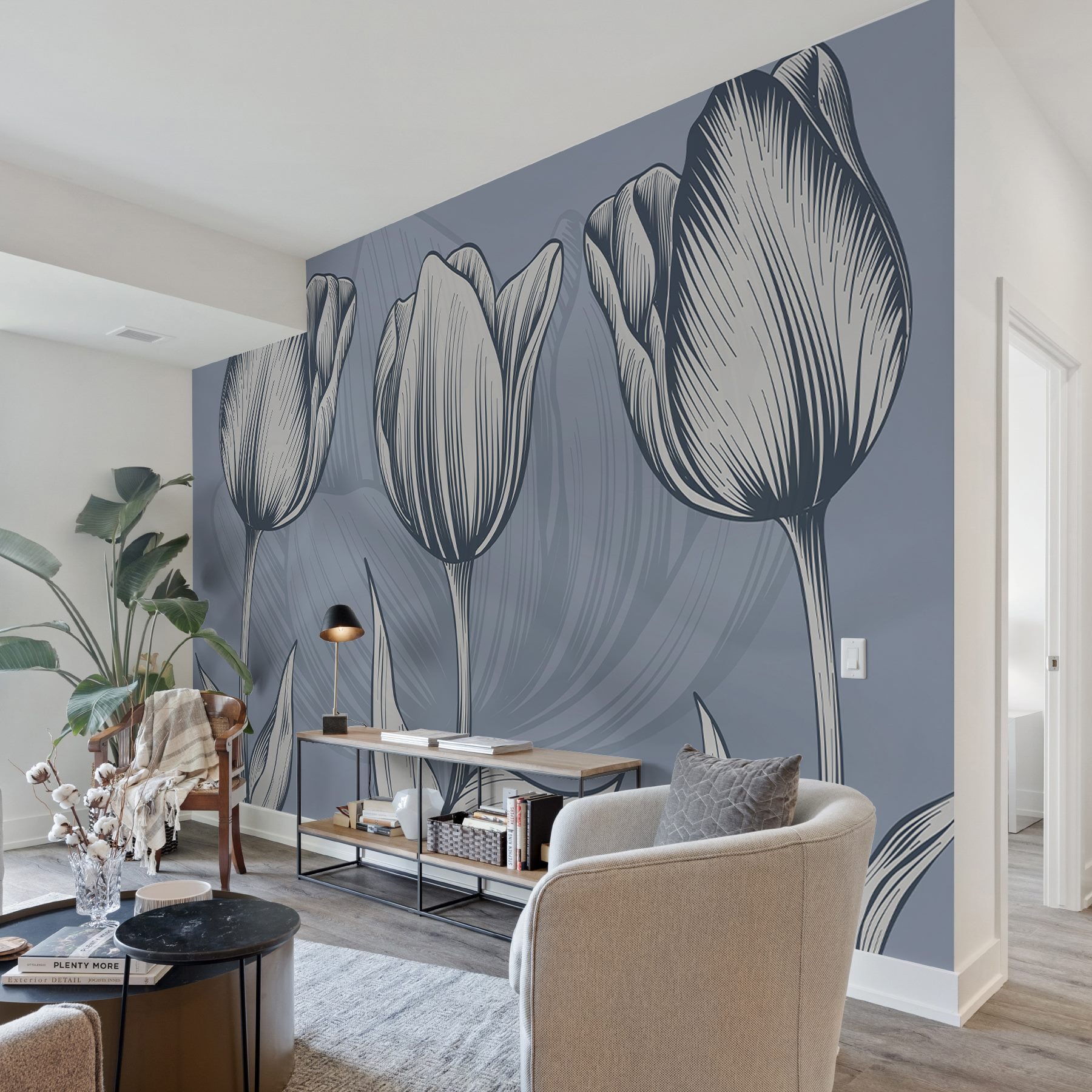 Transform your space with this enchanting wall mural featuring a lovely line of flowers against a calm blue background. It’s like bringing a garden indoors, minus the watering can and pesky insects! Perfect for adding a touch of elegance to any room, this watercolor design dances with light and brings a soothing vibe to your home. Imagine cozy evenings, curled up with a book, while these blooms smile down, reminding you that beauty is everywhere. It’s like having your own little floral escape—no green thumb required!