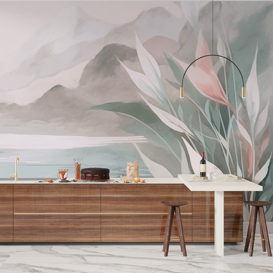 Transforming your space into a tranquil haven is just a mural away! This stunning wall mural, featuring a dreamy mountain and serene water scene, is like giving your room a mini-vacation. Imagine sitting back with a cup of tea, feeling the peaceful vibes wash over you—sounds lovely, right? The soft watercolor tones invite calmness, making it perfect for a cozy reading nook or an open living area. It’s not just decor; it’s a little piece of nature right on your wall. Just one look, and you might find yourself daydreaming about mountain hikes and quiet lakes. Talk about a great escape!