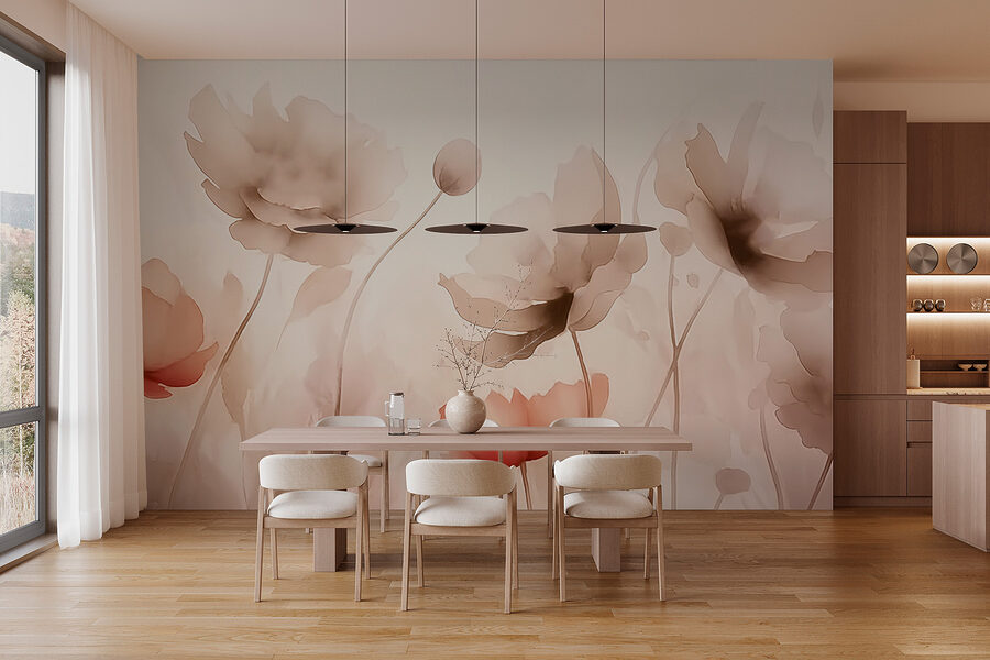Imagine stepping into a sunlit room, where the walls are alive with gentle, soft blossoms in dreamy hues. This mural doesn’t just decorate a space; it whispers a serenity that’s hard to resist. It’s like having a garden that blooms year-round, without the need for any watering. Each flower, painted in subtle shades, invites warmth and calm, transforming an ordinary wall into a soothing landscape. Picture sipping tea, lost in thought, with these lovely petals around you. Perfect for creating a cozy nook or a tranquil escape in a bustling home. Who wouldn’t want to feel that?