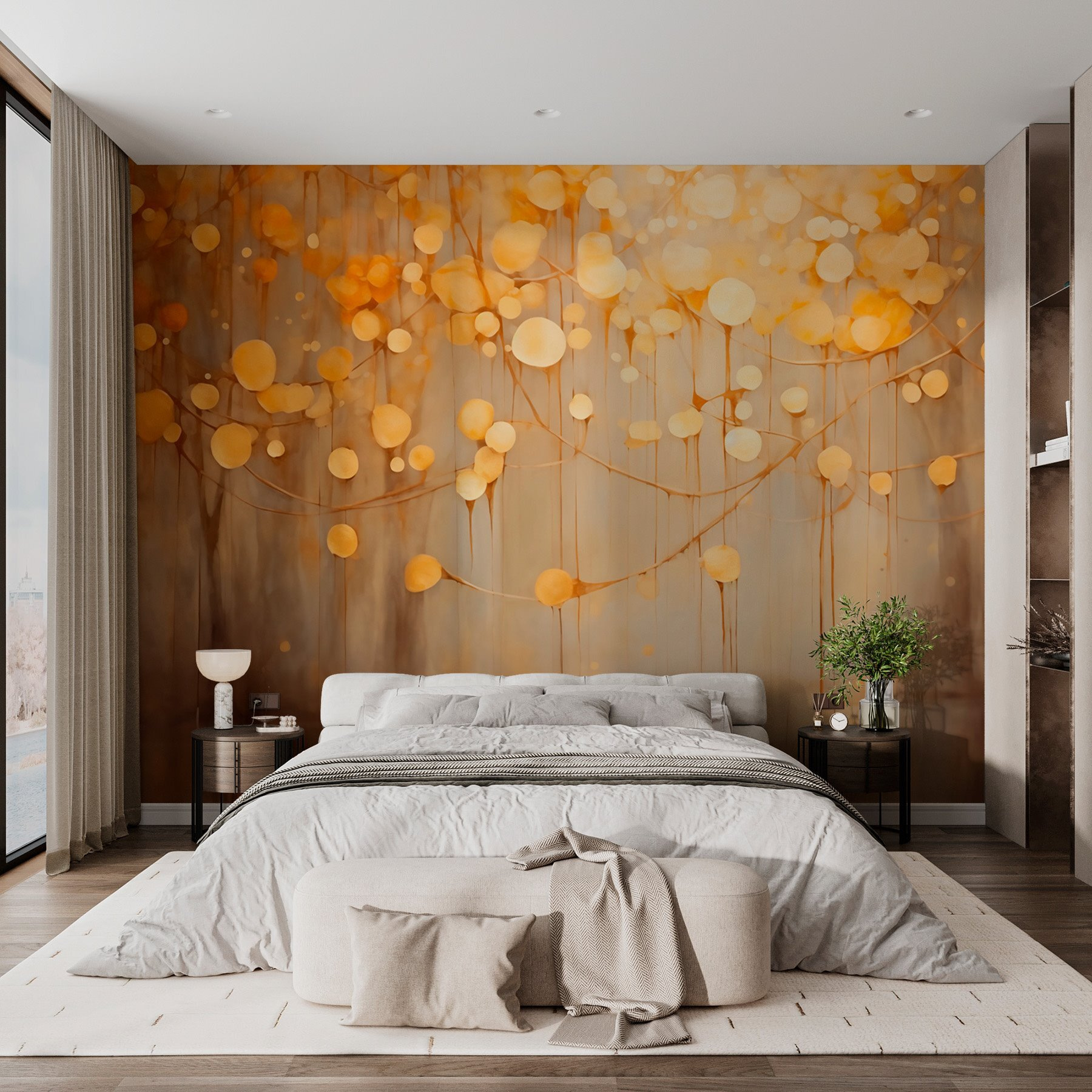 Imagine stepping into a cozy nook that feels both dreamy and a bit whimsical. This mural, with its soft, floating orbs, brings a sense of calm and wonder. It feels like a gentle breeze dancing through a sunlit forest. Those abstract shapes seem to whisper secrets of nature, inviting a sense of peace into any space. Perfect for an art lover who wants to spark conversation or simply chill with a cup of coffee, gazing at the beauty. Whether it’s in a living room, bedroom, or office, this mural adds a splash of creativity and warmth. It could even inspire daydreaming—who wouldn’t want that?