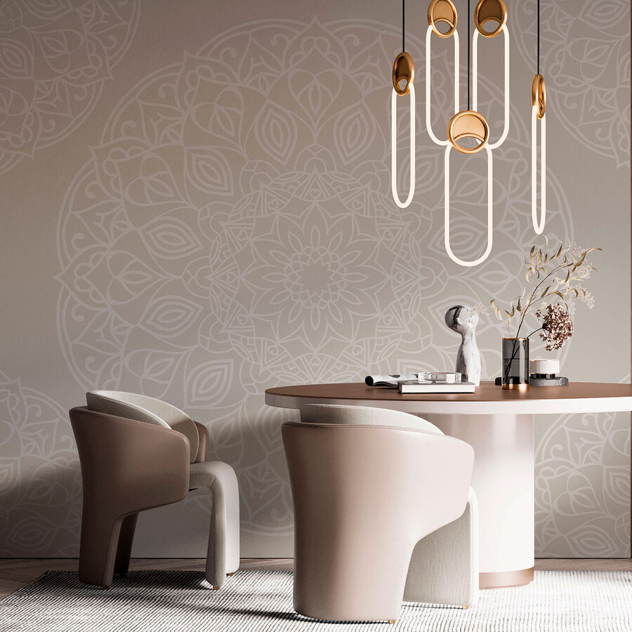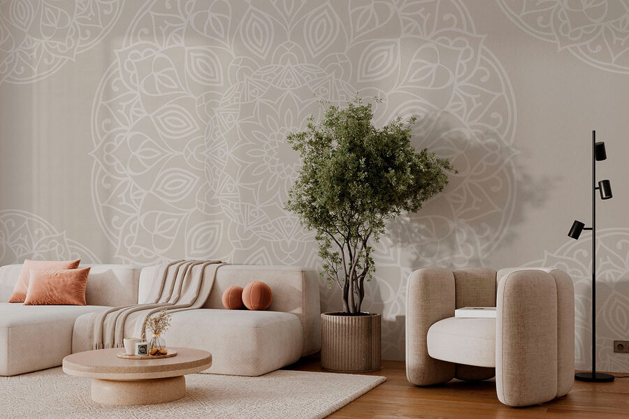 Imagine stepping into a room and being greeted by a beautiful dance of white and gray patterns. This wall mural, with its intricate mandala design, whispers sophistication while keeping things cozy. It’s like having a piece of art wrapped around your walls—inviting yet calming. Picture lounging with a cup of tea, the afternoon light filtering through, making those patterns come alive. It’s perfect for a serene bedroom or a chic living room. All while making your friends wonder if you’ve unlocked a hidden artist within. Who knew decor could feel this cozy and stylish at once?