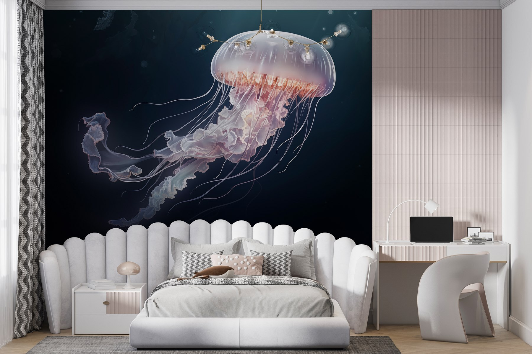 Dive into a world of serenity with the “Wall Murals Jellyfish in the Water.” This stunning piece captures the fluid grace of jellyfish as they drift effortlessly through the depths. Imagine this mural transforming a cozy living room or a peaceful bedroom into a tranquil underwater escape. The soft colors and ethereal vibe invite daydreams of ocean adventures and sun-soaked shores. It’s like having a slice of the seaside right on your wall, calming your spirit every time you walk by. Who wouldn’t want to feel that kind of chill? Perfect for anyone looking to add some splash to their space without risking a squirt from a real jellyfish!