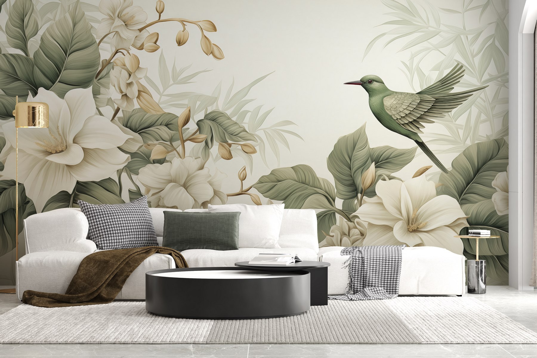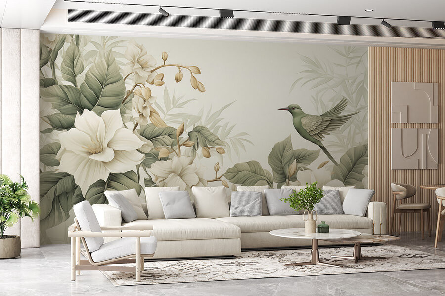 Imagine stepping into a serene oasis every time you walk into a room. The “Bird on a Branch with Flowers” mural transforms your space into a delightful escape. With gentle greens and soft whites, it’s like bringing a little piece of nature indoors—without the pollen, of course. Picture a sunny morning, coffee in hand, as you bask in the tranquil vibes this mural offers. It’s not just decor; it’s a mood. Perfect for brightening up a living room or adding charm to a cozy reading nook. Just don’t be surprised if your friends start asking to come hang out more often—this mural’s got that kind of pulling power!