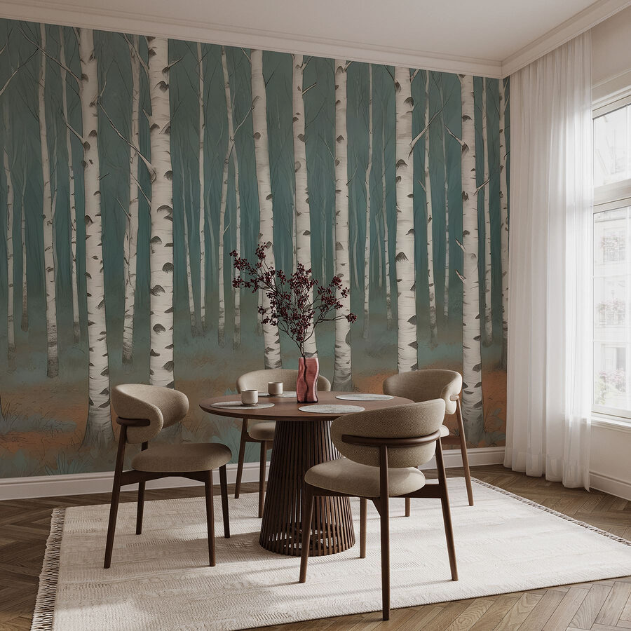 Imagine strolling through a serene forest, the gentle rustle of leaves all around. Now, picture that feeling right in your living room! This enchanting mural brings a group of graceful birch trees to life, inviting a slice of nature indoors. Those striking white trunks and soft, muted greens create a calming atmosphere, perfect for unwinding after a long day or maybe even hosting a cozy book club (snacks are mandatory, of course). It’s like hiding away in a secret woodland retreat—without the bugs! Transform your space into a peaceful paradise that whispers, “Come relax, you deserve it.”