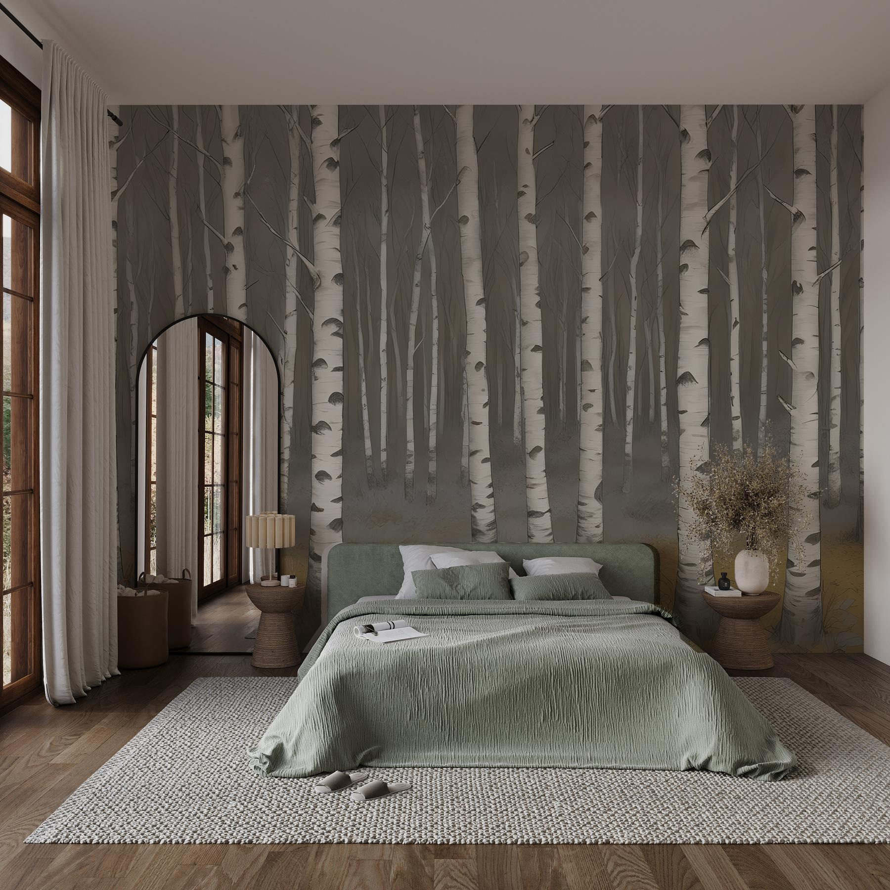 Transform any room into a serene woodland escape with this “Group of Trees in a Forest” mural. Picture this: waking up, grabbing your coffee, and feeling like you’re nestled among calming birch trees, just a whisper away from nature. The delicate whites and warm earth tones offer a cozy vibe, making it perfect for a living room or cozy nook.