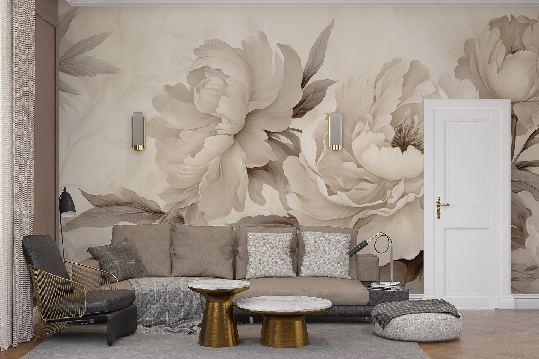 Transform your space with “Soft Petals in Subtle Tones.” This wall mural just whispers elegance, like a gentle breeze on a sunny day. Imagine walking into a room and being greeted by luxurious peonies that seem to float, inviting you in for a closer look. The soft hues create a calming vibe—perfect for cozy evenings curled up with a good book or sharing stories over coffee. Best part? It’ll make you feel like you’ve got a personal garden, minus the watering! Just think of all the compliments – your friends will be swooning, and you’ll be the stylish host everyone talks about.