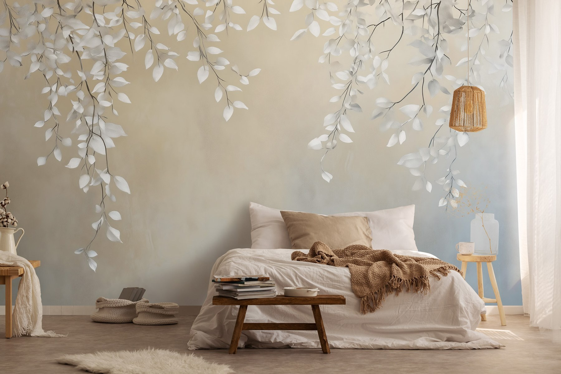 Transform your space with the dreamy elegance of “White Leaves on a Branch” wall mural. Imagine stepping into a serene oasis right in your living room! The soft, watercolor technique feels like a gentle whisper of nature, effortlessly brightening up any wall. It’s perfect for those cozy nights when you’re curled up with a book or enjoying a cup of tea. Picture inviting friends over, and their eyes widening in delight as they admire this lovely backdrop. The light hues create a calming atmosphere that just screams sophistication. Plus, no green thumb needed—this mural brings all the beauty of nature without the watering can. Let your walls do the talking!