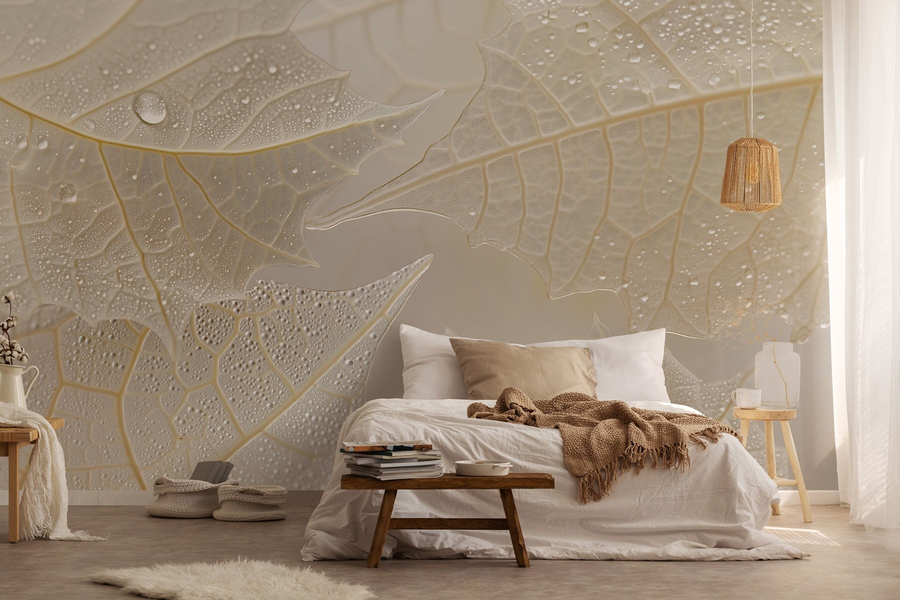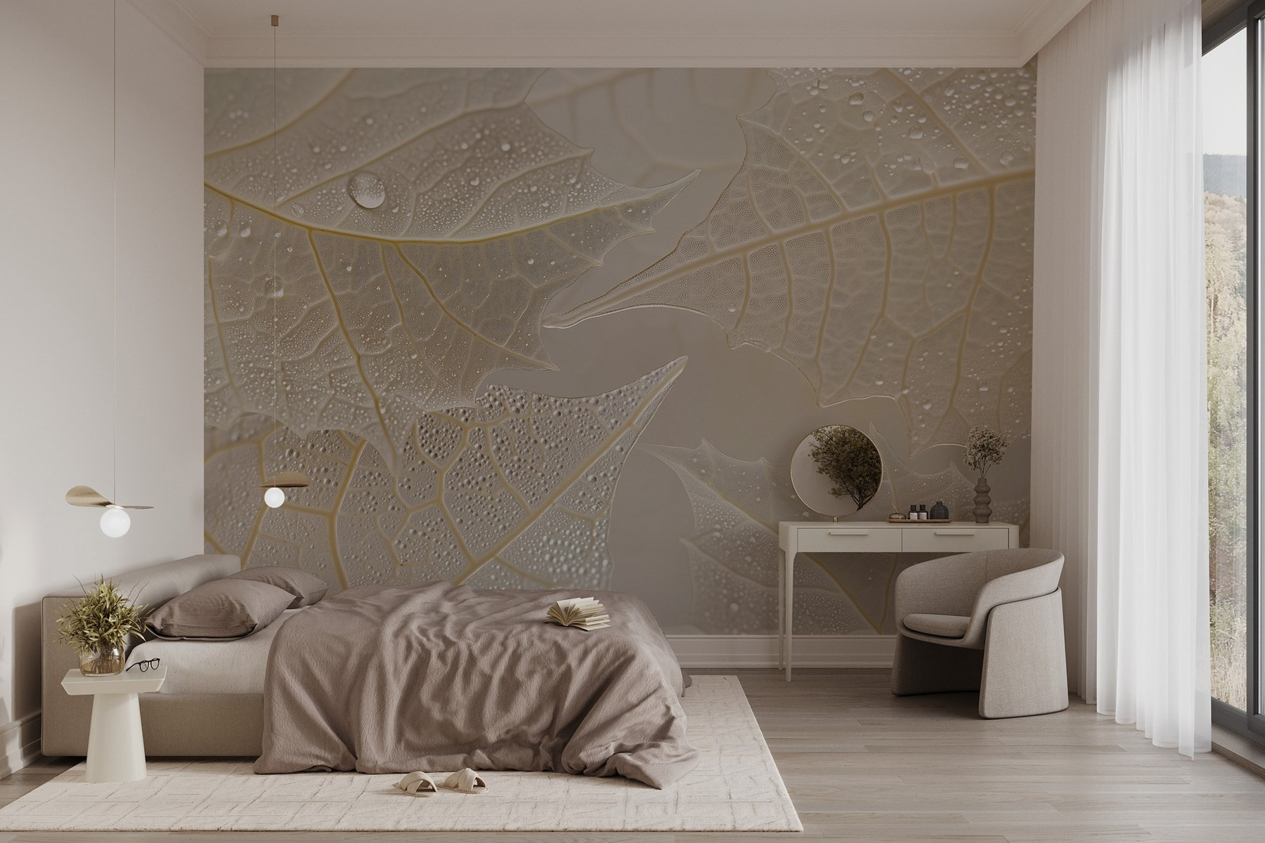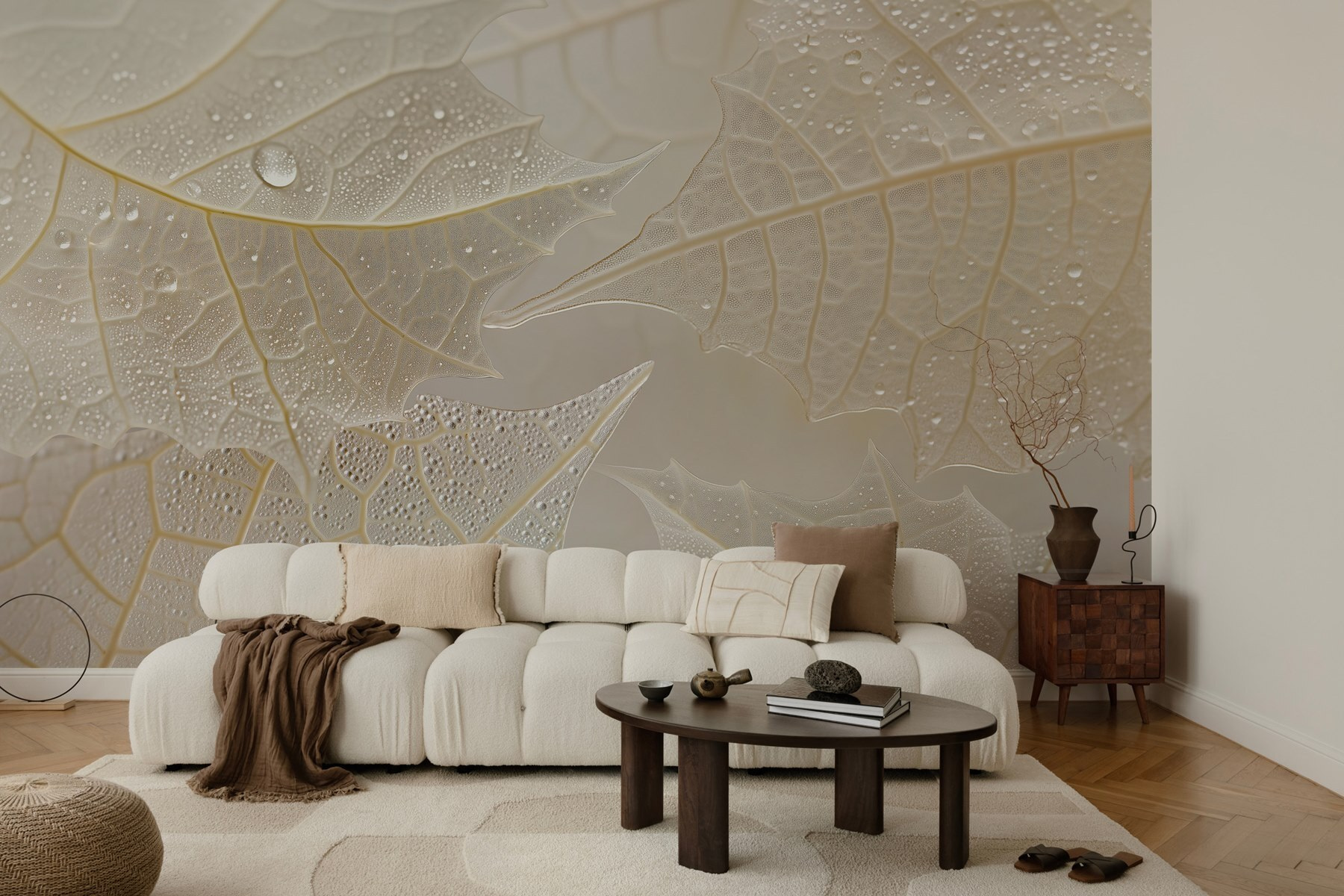 Transform any room into a serene escape with the “Delicate Leaves with Water Droplets” mural. Picture this: a gentle breeze whispering through leaves after a refreshing rain, and voilà—your walls reflect that exact calm! Each leaf, adorned with shimmering droplets, tells a story of nature’s quiet beauty. It’s subtle yet striking, the perfect backdrop for cozy chats or peaceful mornings with coffee in hand. Imagine finally finding that one piece that sparks joy. This mural is not just decor; it’s an invitation to pause, breathe, and enjoy the little moments. Who knew walls could feel so alive?
