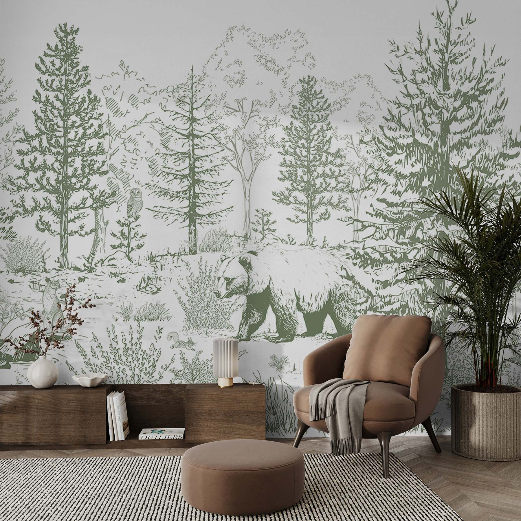 Transform any room into a cozy woodland retreat with this stunning wall mural featuring a bear strolling through a serene forest. Imagine sipping your morning coffee while gazing at this peaceful scene—it’s almost like the bear’s waiting to share some wisdom about life in the wild. The gentle hues of green and earthy tones create a calming vibe, perfect for unwinding after a long day. Plus, it’s a great conversation starter. Guests might feel inspired to tell their own outdoor stories, whether it’s camping mishaps or nature hikes gone wrong. Bring a touch of the wild indoors and let imaginations roam free!