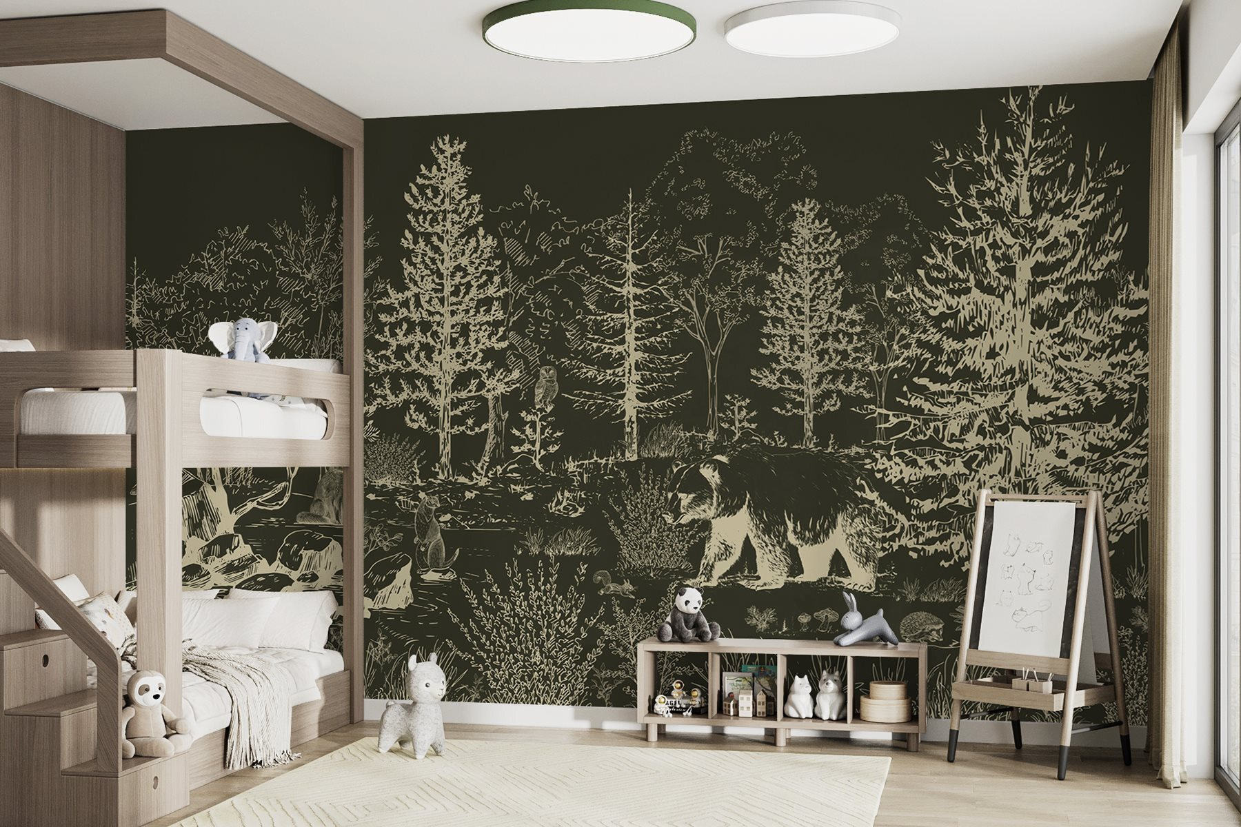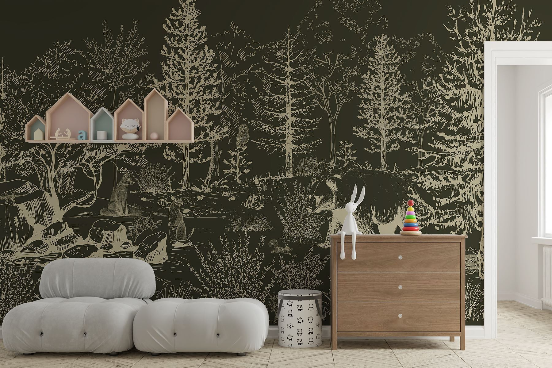 Transform any space into a cozy forest retreat with the “Bear Walking in the Woods” mural. Imagine waking up every day feeling like you’re part of a serene woodland, complete with gentle rustles of leaves and the soft sound of a stream. This striking mural features a majestic bear making its way through a lush landscape, bringing a sense of adventure right into your home. It’s like having a little piece of nature that doesn’t require a hiking permit!