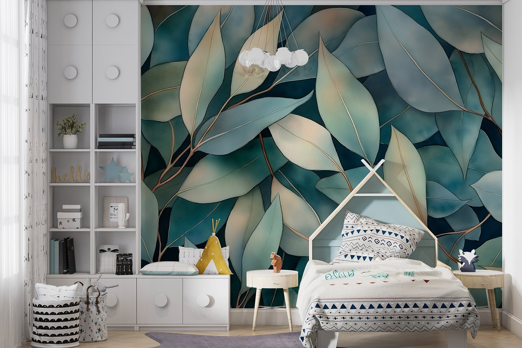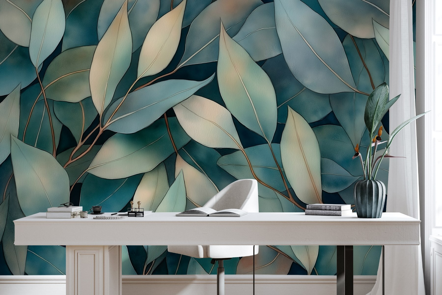 Transform any space into a serene oasis with this enchanting wall mural featuring a soothing group of leaves against a blue background. Imagine walking into a room that feels like a gentle breeze on a sunny day—peaceful, refreshing, and invigorating. It’s like bringing nature indoors without the mess of potting soil or watering cans! The soft hues and flowing lines invite a sense of calm, making it perfect for cozy reading nooks or even a vibrant office. It’s amazing how one mural can inspire a moment of relaxation or creativity. Just think about how great it would feel to sip your morning coffee surrounded by this leafy charm. Who wouldn’t want to unwind here?