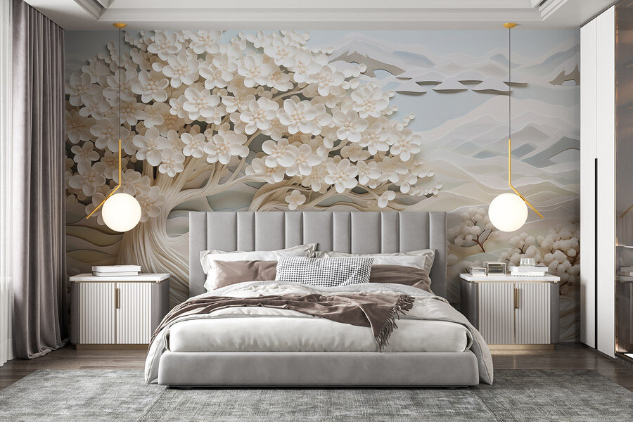 Transform any space into a serene escape with the “White Tree with White Flowers and a River” mural. Imagine stepping into a world where whispering petals and gentle water flows are just a glance away. This mural, with its soft hues and intricate details, invites daydreams and peaceful moments. It’s like bringing a piece of nature indoors—perfect for anyone who loves a touch of calm. Whether it’s in a cozy reading nook or a lively living room, this mural promises to be a conversation starter and a daily reminder of beauty. Plus, who wouldn’t want to pretend they live by a tranquil river?