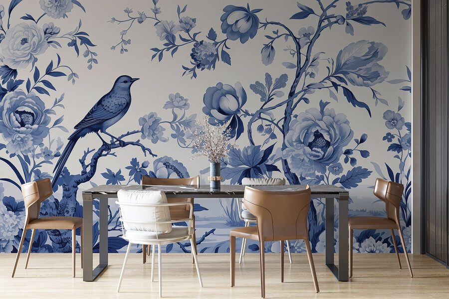Transform a plain wall into a dreamy escape with this beautiful mural of a bird perched on a tree branch, surrounded by delicate flowers. It’s like inviting a gentle breeze into your home. Imagine sipping your morning coffee and feeling transported to a serene garden, with the soothing blues and exquisite watercolor style softening the room. This mural isn’t just decor; it’s a conversation starter, a moment to pause and enjoy life’s little wonders. Perfect for a cozy nook or that wall that needs a little love, it brings instant warmth and charm. Your walls will thank you!