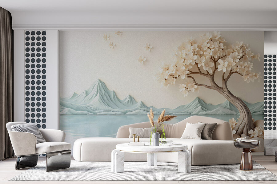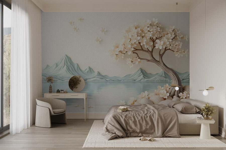 Transform your space into a serene escape with this stunning wall mural, “Tree with Flowers and Rocks Next to Water.” Picture it: a beautifully crafted tree bursting with delicate flowers, gracefully leaning over a tranquil body of water. It’s like inviting a slice of nature right into your living room. The soft colors and gentle lines instantly bring calm vibes, perfect for sitting back with a cup of tea—or maybe even a cheeky snack. And let’s be honest, who doesn’t need a serene backdrop while binging their favorite shows? This mural is more than decor; it’s a daily reminder to appreciate the little things, like the beauty of a flower or a quiet moment by the water.