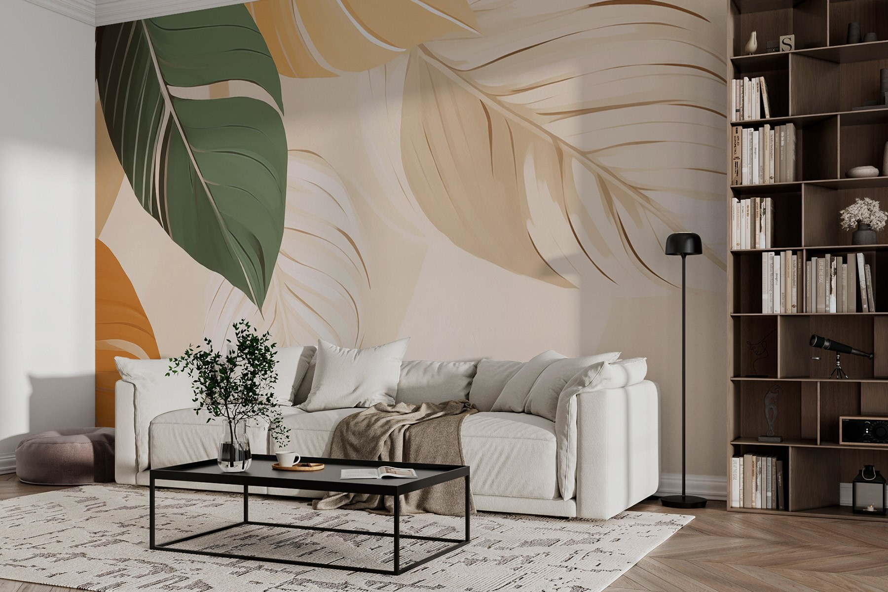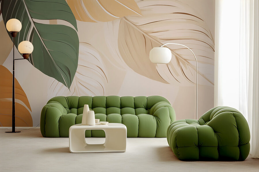 Imagine walking into a space that feels like a sun-drenched forest, just bursting with life. “Nature’s Palette of Vibrant Leaves” brings that soothing vibe right to your walls, with lush greens and warm autumn hues that instantly lift the mood. It’s like having a piece of the great outdoors indoors—no mud on the shoes, but all the beauty. Picture hosting friends, and they can’t help but admire the mural, sparking conversations about favorite hikes or woodland picnics. The soft, flowing lines give a sense of calm, making any room feel cozy and inviting. A perfect backdrop for lazy Sundays or lively book club meetings—it’s nature at its finest, without the pesky insects!