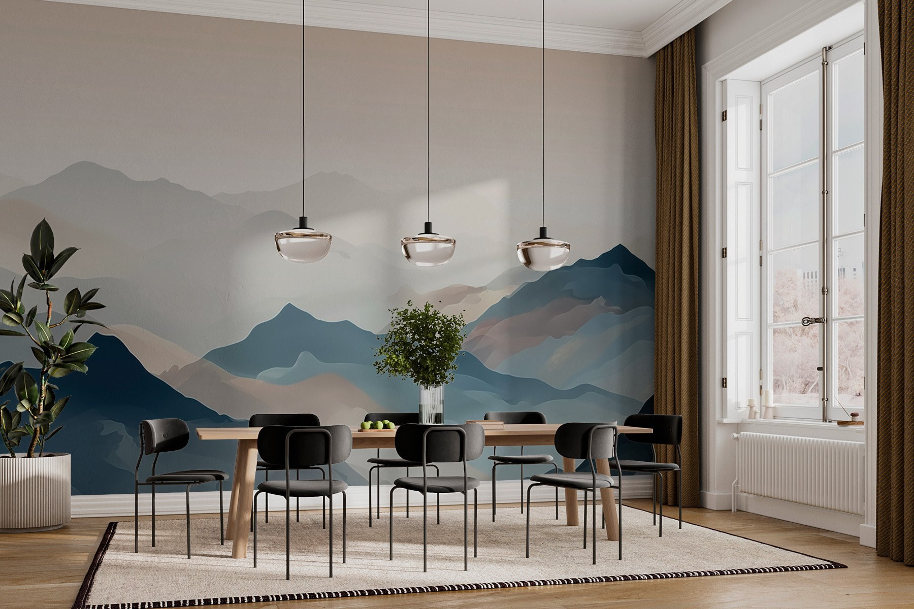 Imagine waking up in a cozy cabin, the sun peeking through the trees, and you feel like you’re watching mountains come alive right before your eyes. This “Wall Murals Mountain Range with Fog” captures that dreamy vibe wonderfully. The soft watercolor strokes blend shades of blue and earthy tones, creating an atmosphere that whispers peace and calm. It’s like a gentle hug for your walls. Picture it in a reading nook—curling up with a good book and a warm drink, totally immersed in the serene view. It’ll make you feel like you’re on a never-ending adventure, even while lounging at home. No climbing gear required!