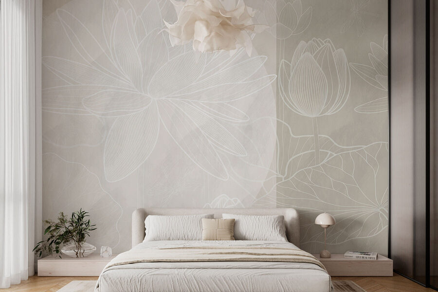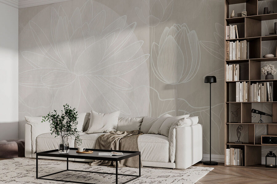 Transform any wall into a serene oasis with this enchanting mural featuring delicate white flowers on a soft grey backdrop. It’s like bringing a little garden inside, minus the pesky bugs and unpredictable weather. Just imagine a cozy coffee nook where friends gather, each admiring the gentle elegance on the wall. The subtle watercolor effect adds a dreamy touch, inviting moments of pause and reflection. Perfect for anyone who craves a splash of nature without the need to water the plants or remember to avoid the direct sunlight. This mural isn’t just decor; it’s a feeling.