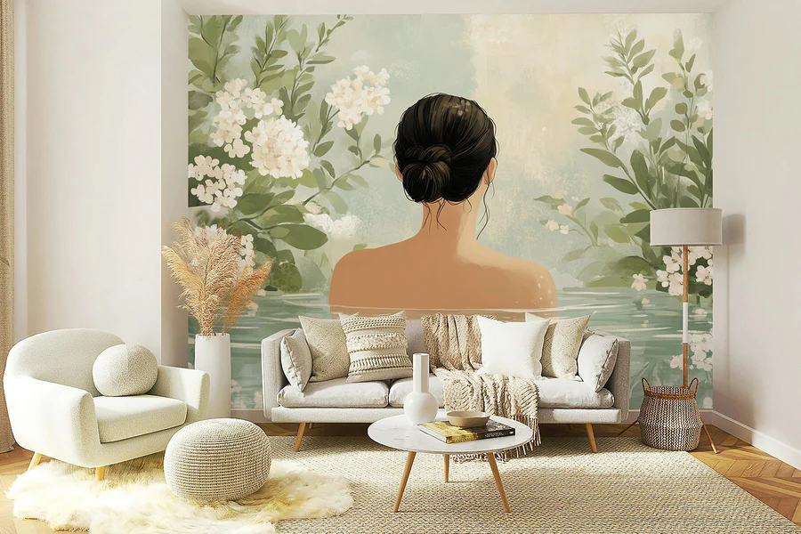 Transform your space with the mesmerizing “Woman in Water with Flowers” mural. This stunning piece captures a serene moment, where a lovely figure is gently immersed, surrounded by delicate blooms. Imagine plopping down on your sofa, a cup of tea in hand, as you gaze at this calming scene—it’s like a mini-vacation right in your living room. The soft colors and peaceful vibe make it perfect for a cozy bedroom or a tranquil office. Who wouldn’t feel relaxed staring into that dreamy water? It’s nature-inspired décor that invites serenity and a touch of elegance into any room, making every glance a little escape into bliss. Add a splash of calm to your life!