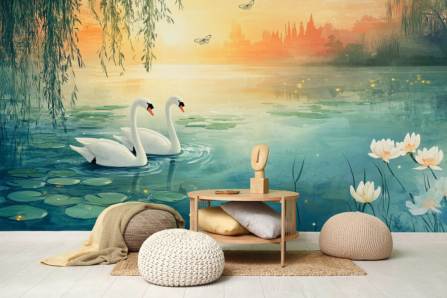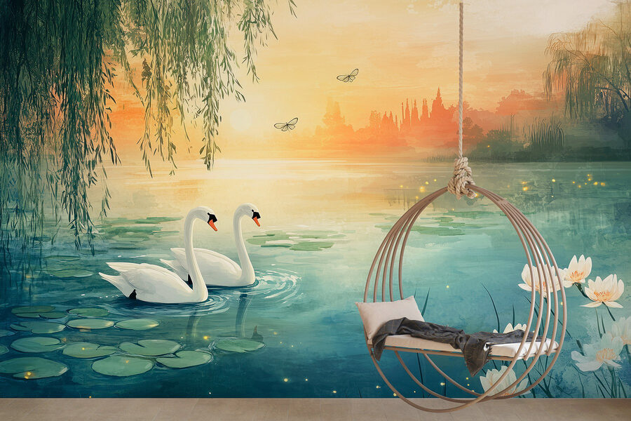 Dive into serenity with the “Two Swans in a Lake” mural—it’s like nature’s own hug! This design features graceful swans gliding through a tranquil lake, with soft sunlight filtering through the trees. It’s perfect for turning any room into a peaceful retreat. Imagine sipping your morning coffee, surrounded by this gentle scene, or curling up with a good book as the lovely ambiance takes you far away. The subtle colors and calm vibe add a touch of elegance, making everything feel just a bit more special. Plus, those water lilies? Total show-stoppers! This mural isn’t just decor; it’s an invitation to pause, breathe, and appreciate the little moments. Go ahead, let your walls whisper stories of calm and beauty!