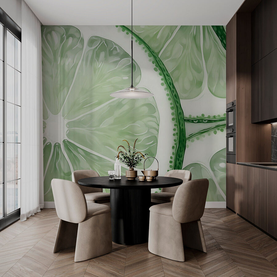 Brighten up any space with this lively wall mural featuring fresh lime slices stacked together. It’s like inviting a summer picnic right into your home. Imagine walking into a room and immediately feeling a burst of zest—those vibrant green hues practically giggle with energy!