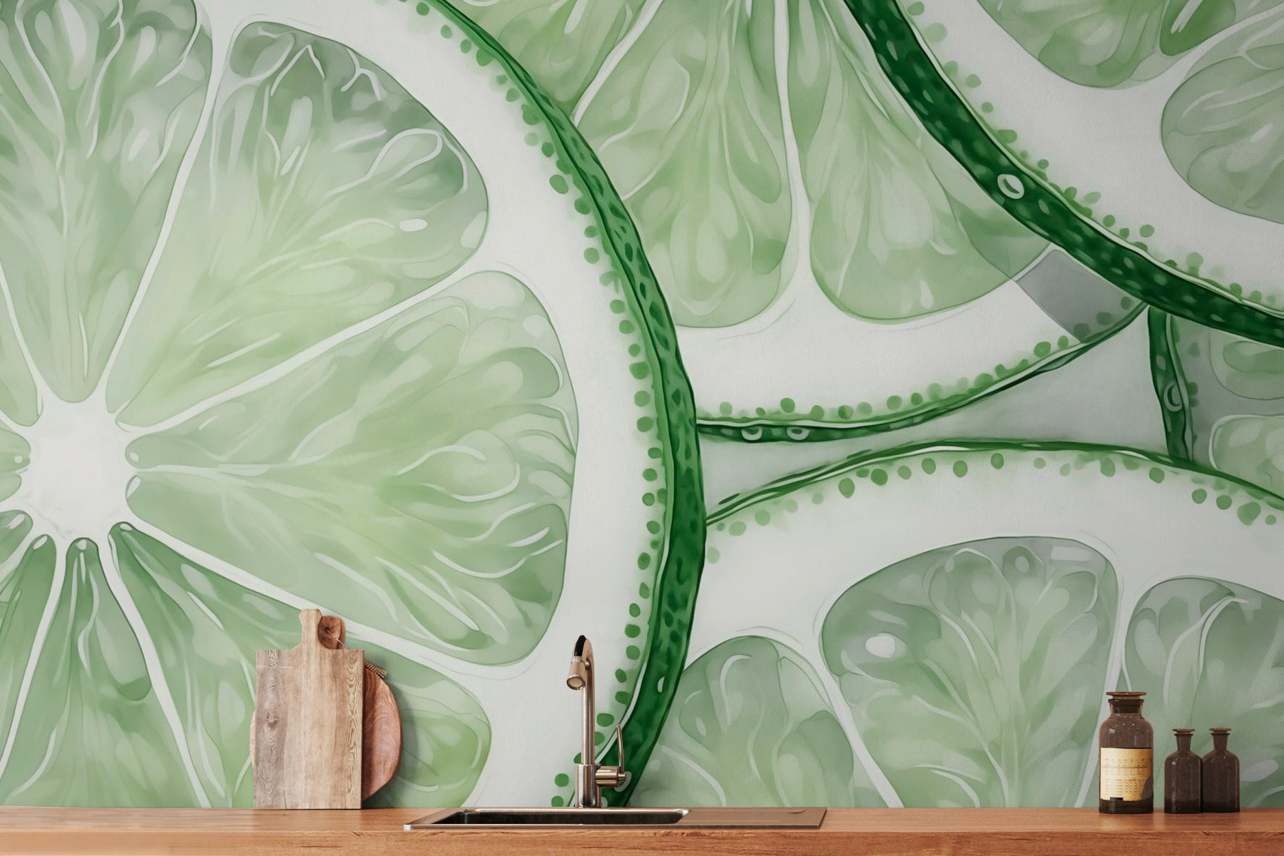 Brighten up any space with this lively wall mural featuring fresh lime slices stacked together. It’s like inviting a summer picnic right into your home. Imagine walking into a room and immediately feeling a burst of zest—those vibrant green hues practically giggle with energy!