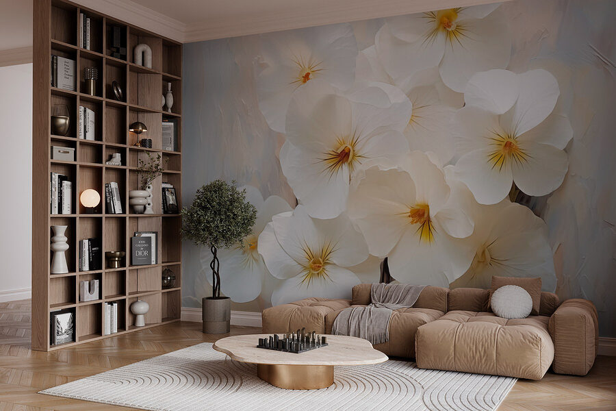 Transform your space with this lovely wall mural featuring a stunning group of white flowers. Imagine waking up each day to a burst of freshness, as if stepping into a serene garden. These delicate blooms bring a calming vibe that instantly lifts the mood, making it perfect for a cozy living room or a peaceful bedroom retreat. Friends might even stop by just to admire it—who wouldn’t want to share a cup of tea surrounded by such beauty? Not to mention, it’s a conversation starter. Whether it’s a backdrop for family photos or a personal escape, this mural adds a touch of nature that’s hard to resist.
