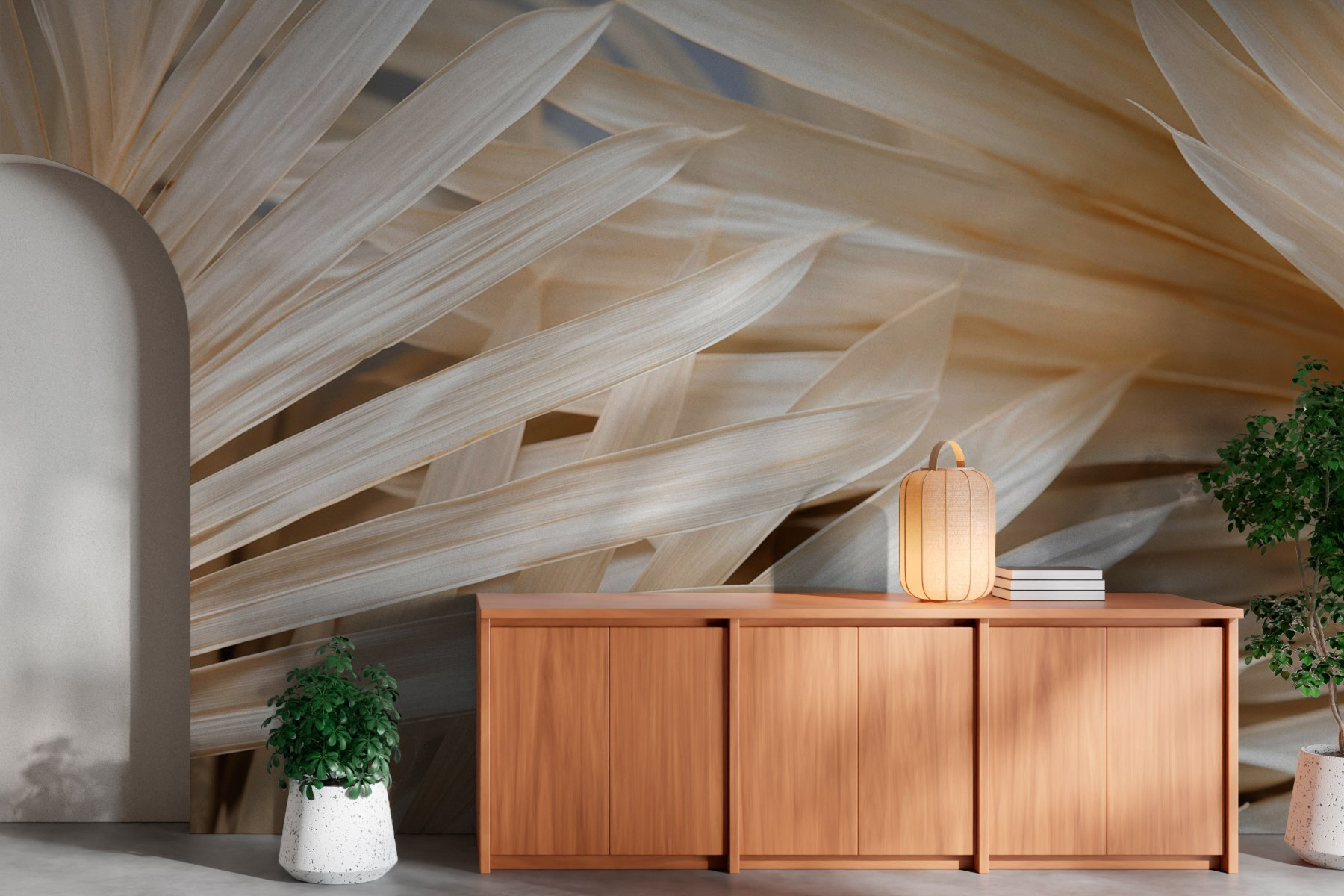 Transform your space into a tranquil retreat with the “Natural Elegance of Palm Leaves” mural. Imagine stepping into a soothing oasis every time you walk into the room. Those soft, flowing palm leaves bring that tropical vibe right to your walls – perfect for adding a touch of nature without the worry of watering plants!