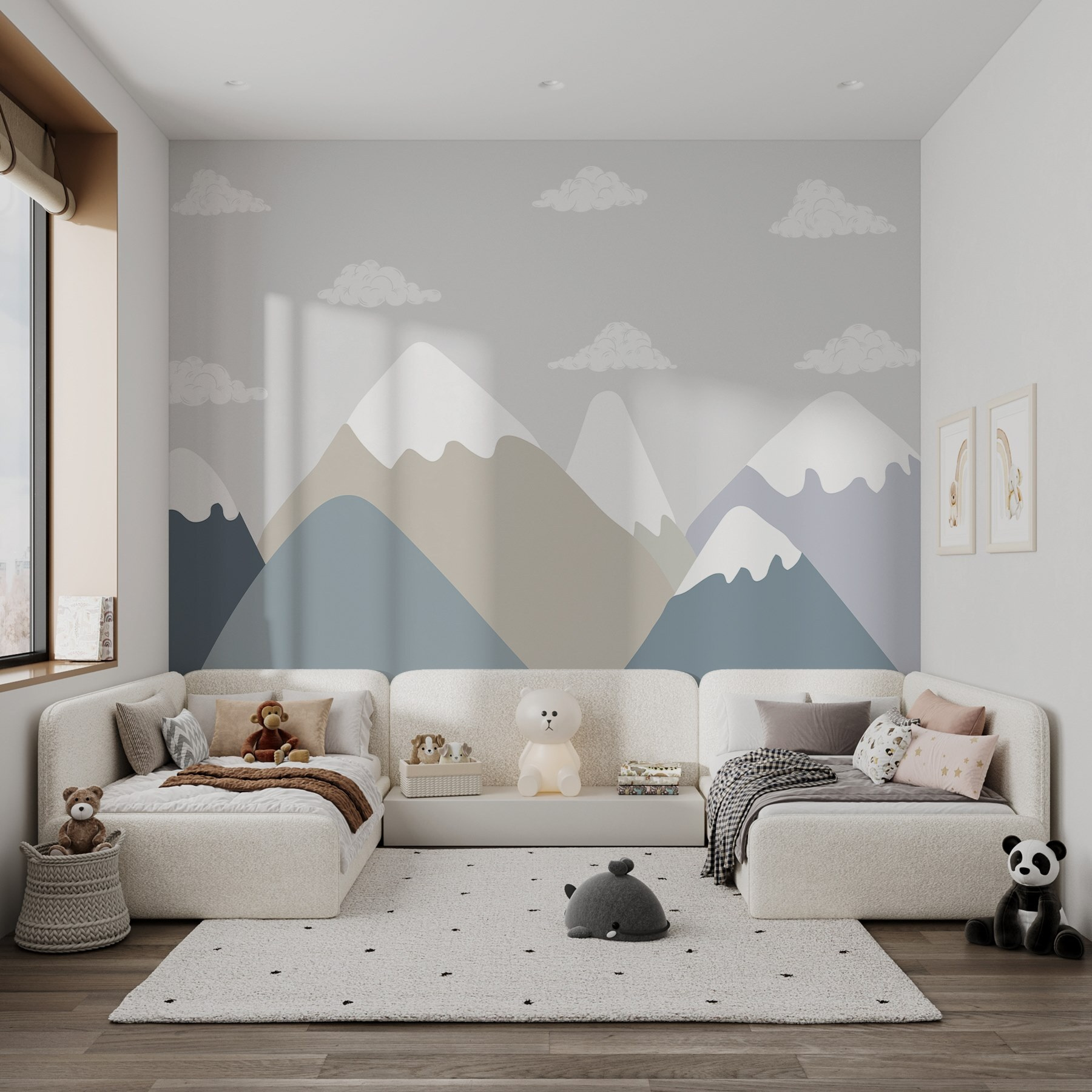 Imagine stepping into a cozy room, and bam, there it is—a mountain range mural that seems to whisper, “Adventure’s waiting!” This dreamy design, with soft clouds whisking by, offers a serene escape right in the comfort of home. Picture enjoying your morning coffee while gazing at those gentle peaks; it’s like being virtually transported to the great outdoors without the hiking boots.