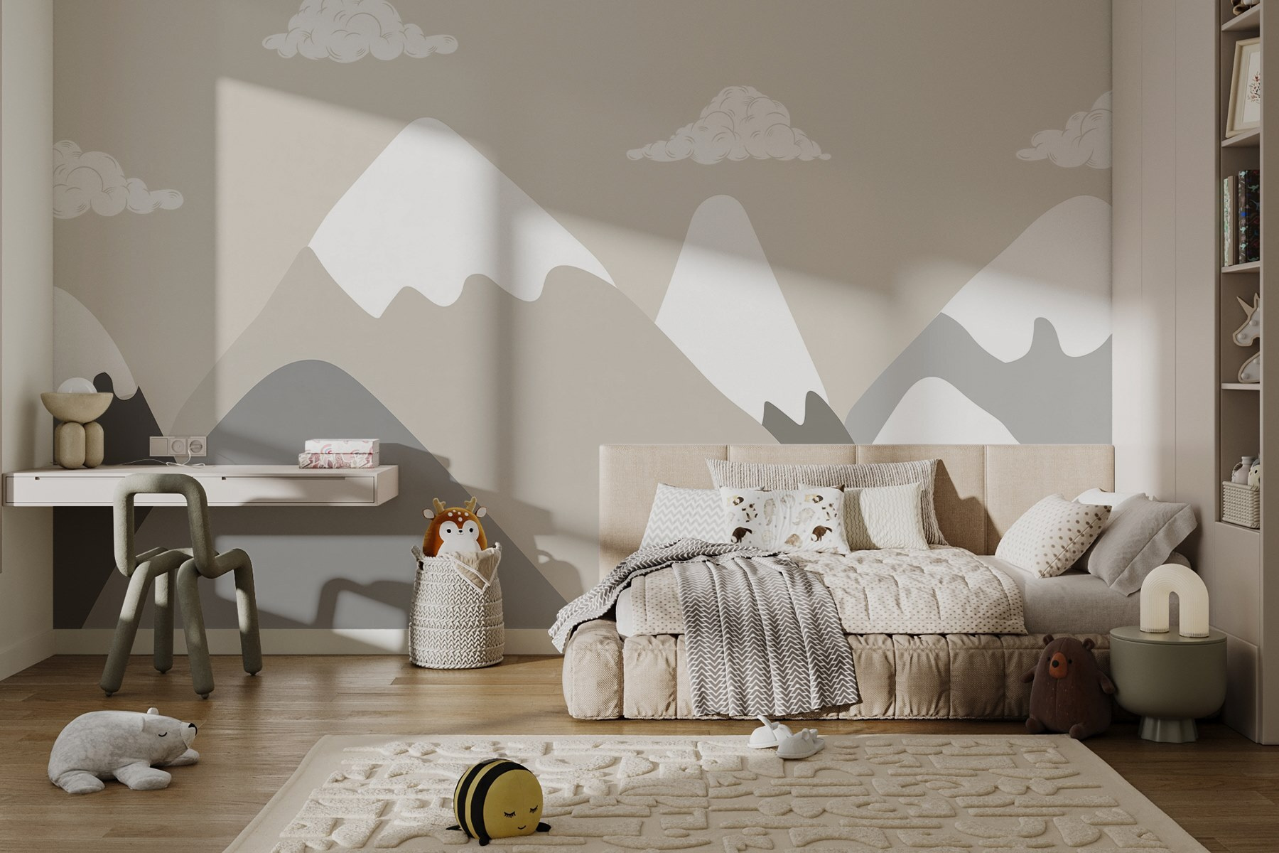 Transform your space with this stunning mountain range mural, where soft clouds dance above serene peaks. It’s like having a miniature getaway right on your wall! Imagine sipping coffee while gazing at those wonderful, rolling mountains. They’re not just pretty; they invite daydreaming and a bit of wanderlust. Plus, the muted colors blend perfectly into any room. Whether it’s the living room, a cozy reading nook, or even a home office, this mural brings a calming vibe. It’s nature’s way of saying, “Take a deep breath and relax.” Just think—every day could start and end with a view like this.