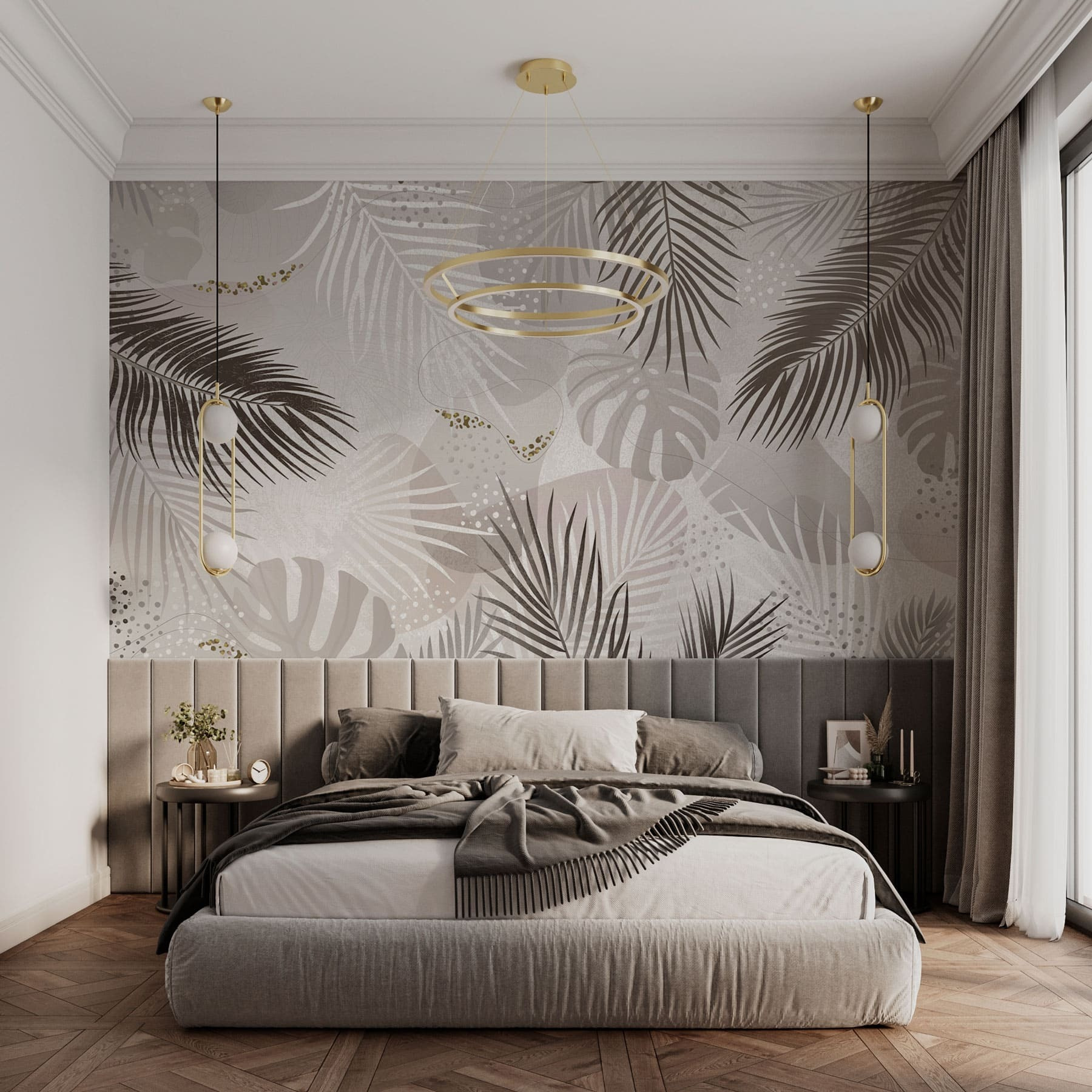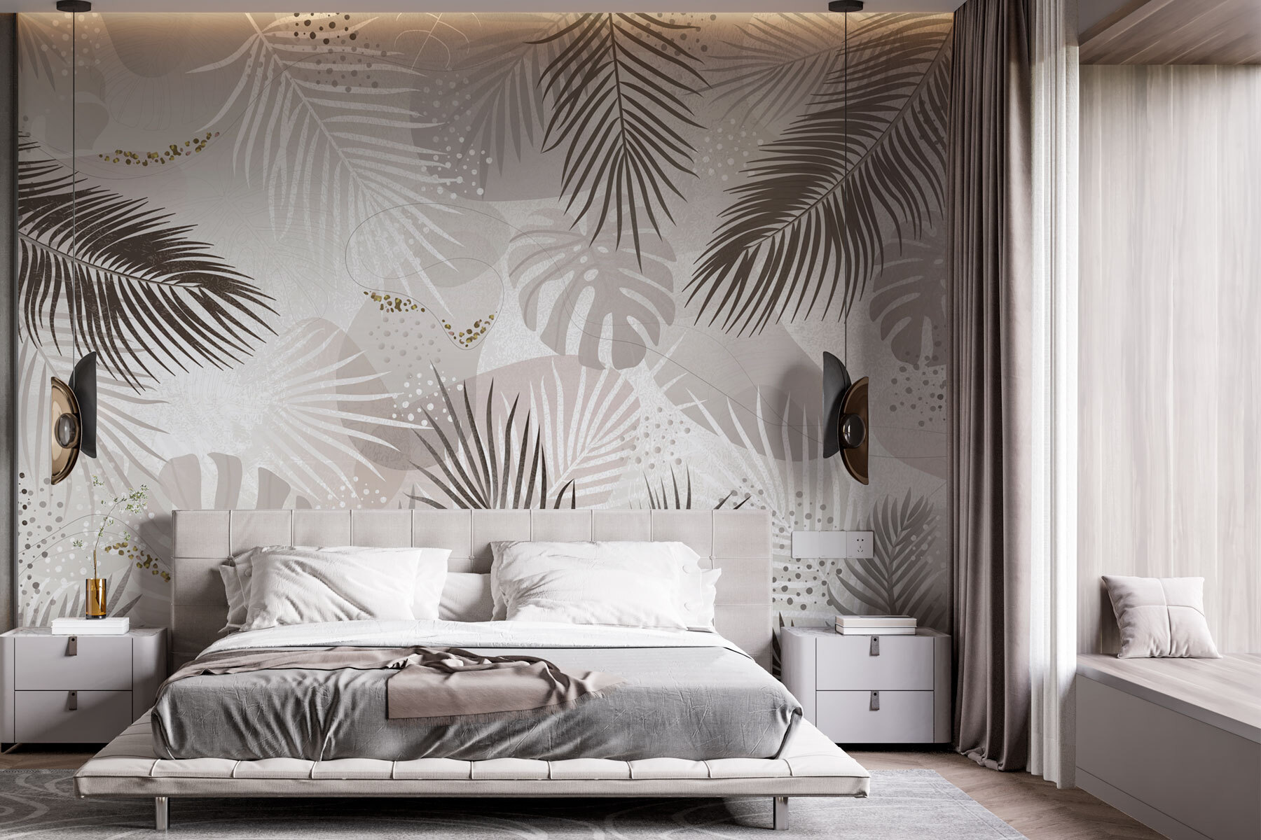 Transform any room into your personal oasis with this wall mural featuring elegant tropical foliage in soft, neutral tones. Imagine stepping into a serene paradise every time you walk in. The lush leaves dance across the surface, evoking a sense of calm and tranquility—perfect for unwinding after a long day. This mural doesn’t just beautify a space; it breathes life into it, making it feel fresh and inviting. Friends might just mistake your home for a cozy getaway. So, why not bring a touch of the tropics home? It’s like vacation vibes without the plane ticket!