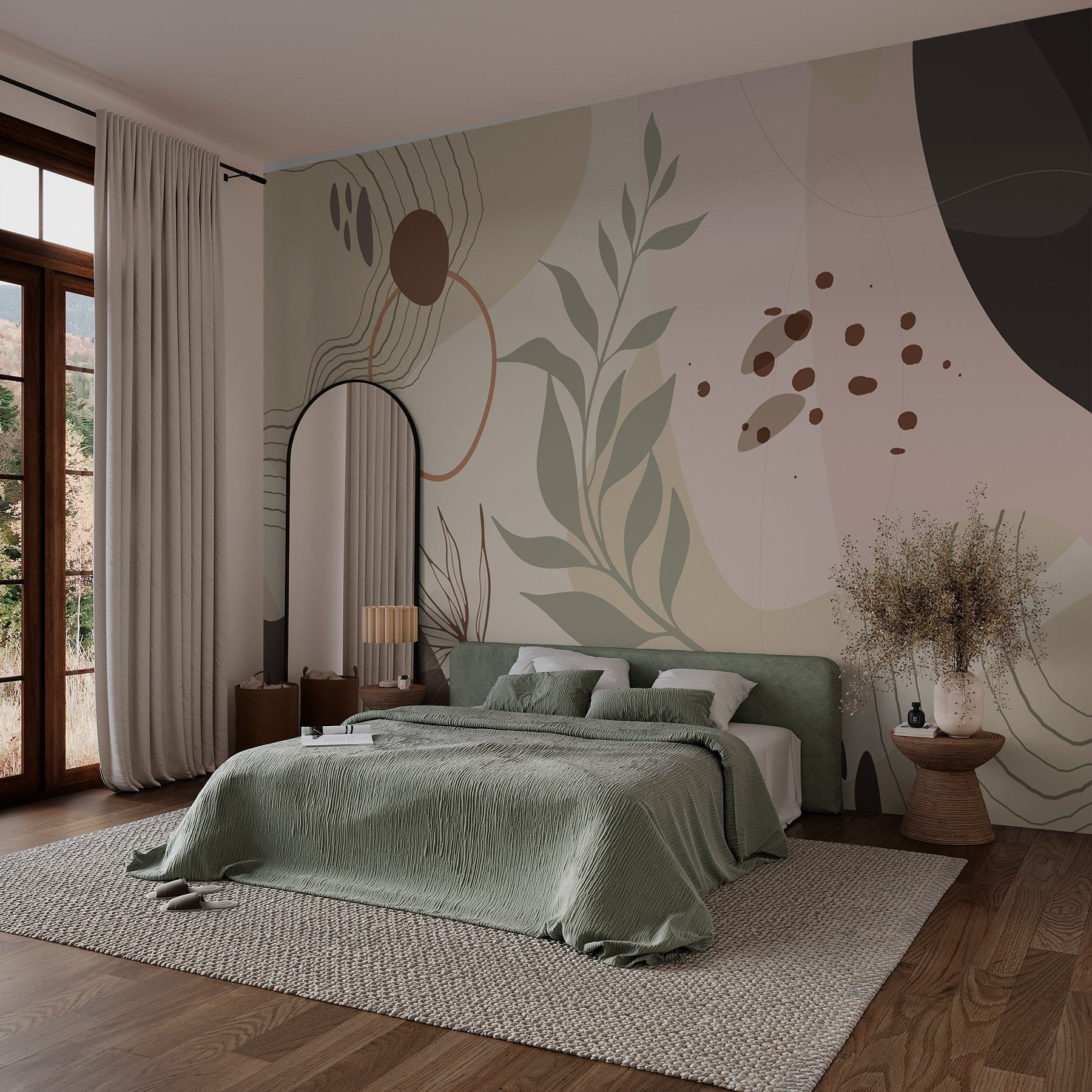 Transform your space with this stunning mural that dances with organic shapes in soft earth tones. It feels like a gentle hug for your walls, bringing warmth and serenity to any room. Picture cozy evenings spent sipping tea while this mural’s soothing vibes wrap around you like a comfy blanket. The muted colors work like magic, blending perfectly with all kinds of decor. It’s like a piece of nature right inside your home, whispering calm and creativity. Why not let every glance at your wall spark a little joy? After all, life’s too short for boring walls!