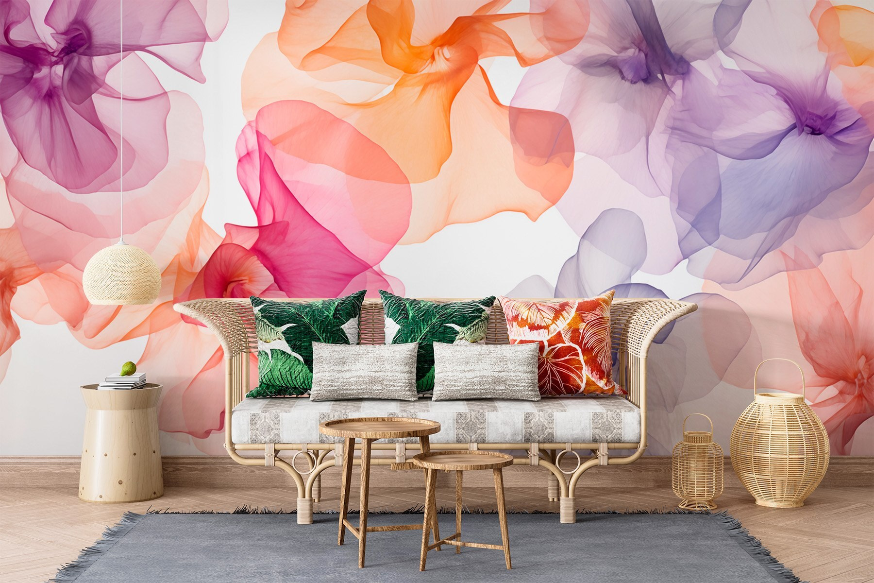 Brighten up any room with this exquisite wall mural featuring a stunning group of flowers in a dreamy blend of colors. Imagine waking up to a soft wave of watercolor petals—each shade gently playing with light, creating a serene and uplifting vibe. It’s like having your own little garden, minus the pollen and the weeding!
