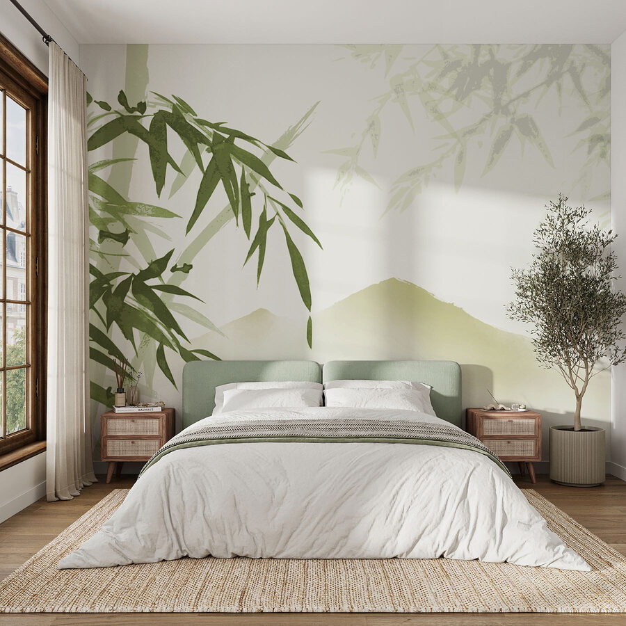 Transform a plain wall into a serene escape with the “Calming Bamboo and Mountain Landscape” mural. Imagine walking into your room and instantly feeling a wave of tranquility wash over you. The soft greens and gentle images of bamboo can almost make you hear the rustling leaves in a breezy forest. Picture sipping tea while gazing at those mountains—ah, nothing like a mini vacation at home! It’s perfect for creating a cozy nook or adding a touch of nature to any space. Ideal for those moments when you just need to pause and breathe. So, why not let a bit of nature in?