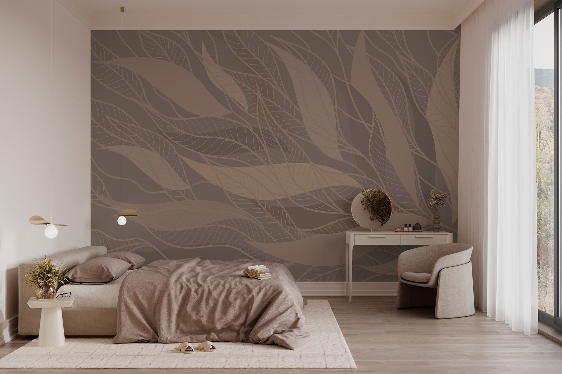 Transform your space with this lovely brown and white wall mural, making it feel like a cozy afternoon in a serene garden. Imagine sipping coffee while gazing at the gentle curves of the leaf patterns. The soft, earthy tones invite relaxation, creating a warm atmosphere that makes you want to settle in with a good book—or just enjoy the view. Perfect for any room that could use a touch of nature without the fuss. This mural doesn’t just decorate; it tells a story of calmness and simplicity, reminding everyone that life can be beautifully understated. Perfect for those who love unique decor that holds a quiet charm.