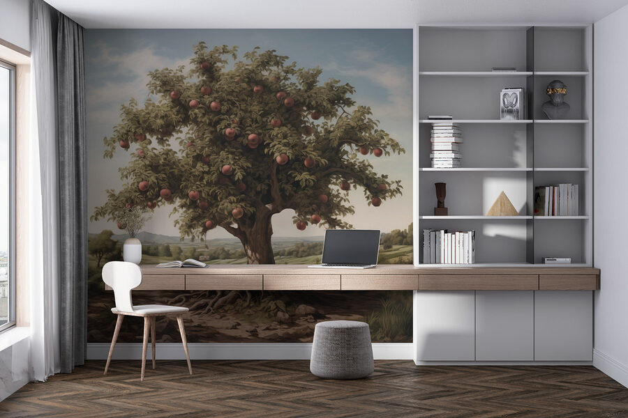 Transform your space into a serene escape with the charming “Tree with Apples” wall mural. Imagine the gentle rustle of leaves and the sweet, crisp scent of fall as this beauty brings nature indoors. Those plump apples almost seem to invite you for a picnic right beneath their boughs. Perfect for living rooms, cozy nooks, or even a quirky kitchen, it makes you feel like you’re sipping cider on a sunny day. Plus, who wouldn’t love a conversation starter that practically begs for a picnic? A dash of whimsy and a whole lot of nature—a delightful addition to any décor!