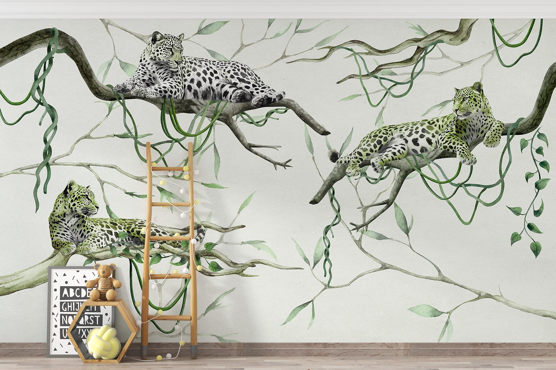 Transform a room into a serene jungle retreat with this stunning mural featuring a group of leopards lounging on branches. Imagine stepping into your space and feeling that instant vibe of wildlife tranquility. Those leopards seem to say, “Chill out, you’ve earned it!” With their playful spots and cozy poses, it’s like they’re inviting you to kick back and savor the moment.
