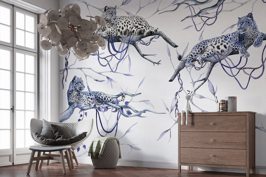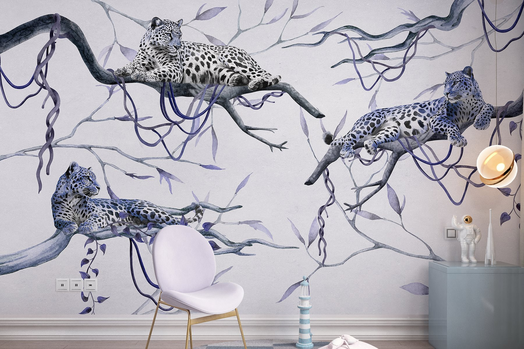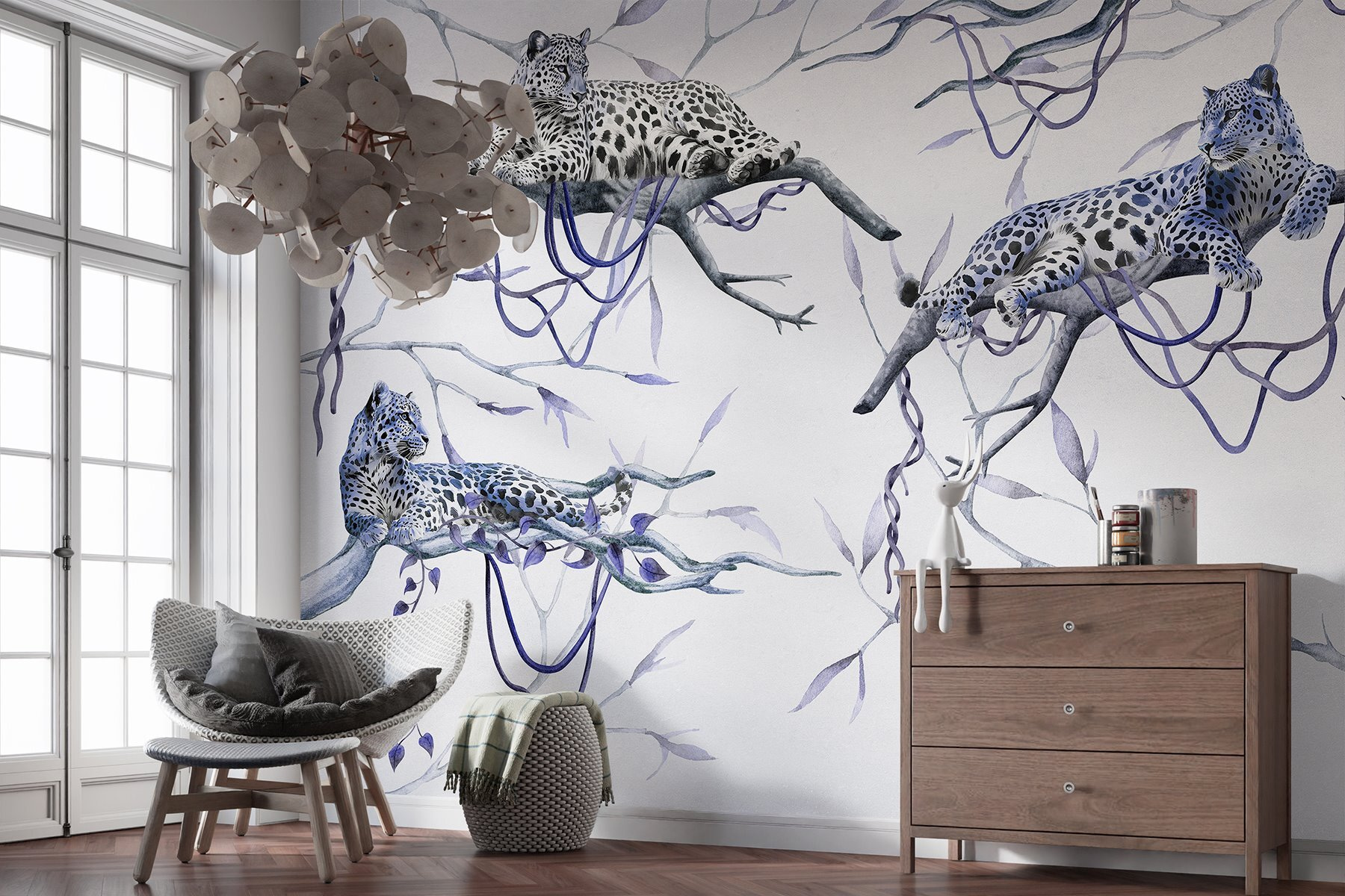 Transform your space into a jungle paradise with this captivating mural of leopards lounging on branches. Imagine waking up and feeling like you’ve entered a serene forest. These magnificent cats, with their striking spots and calm demeanor, bring a whole vibe to the room. Perfect for a living room or cozy nook, this mural isn’t just decor—it’s like having a little slice of nature right at home. The soft colors and detailed artwork invite daydreams of tropical adventures while offering relaxation. It’s where wildlife meets warmth—who wouldn’t want that?
