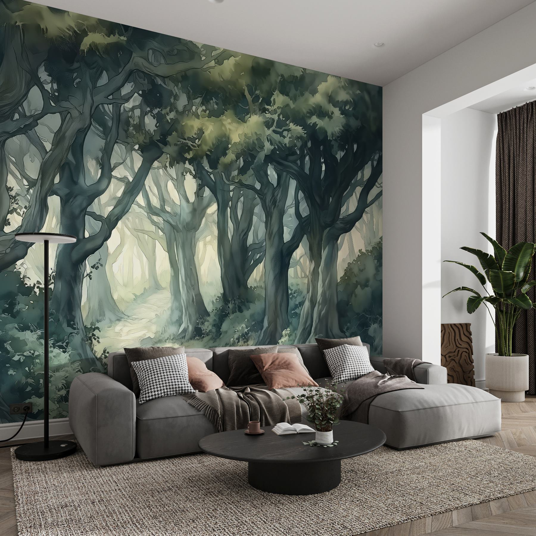 Perfect for living areas or bedrooms, this mural adds that touch of the outdoors, even if you’re stuck inside. It’s all about creating a vibe, a feeling, a tiny retreat within your home. So why not take a little stroll through the forest, every single day?