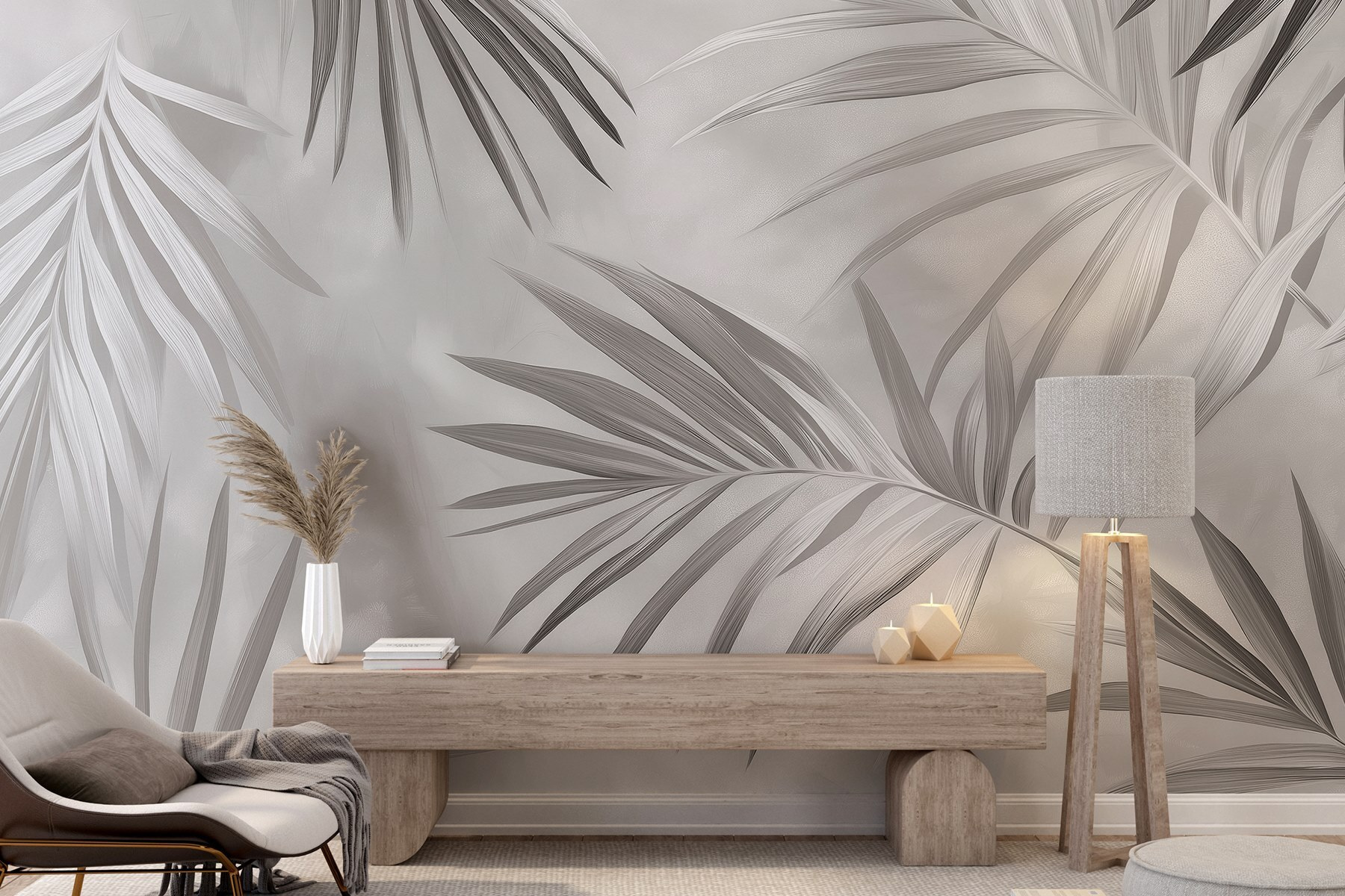 Transform any wall into a serene escape with this gorgeously soft monochrome leaves mural. Imagine stepping into a peaceful grove every time you glance at your wall. The gentle motion of the leaves, all wrapped in soothing shades of gray, creates a sense of calm that’s perfect for spaces meant for relaxation—think cozy living rooms or tranquil bedrooms. It’s like bringing a slice of nature indoors, minus the bugs! Plus, the subtle tones make it easy to pair with any decor style. Friends might even think you hired a designer—shh, your little secret!