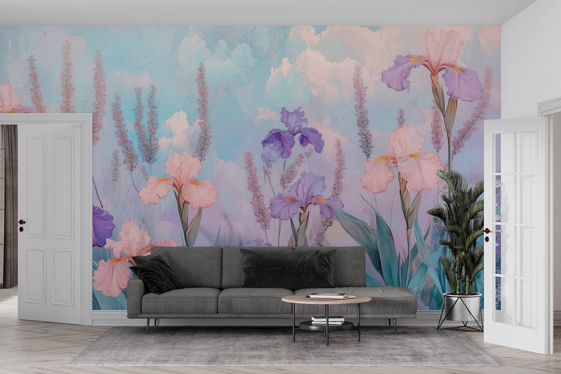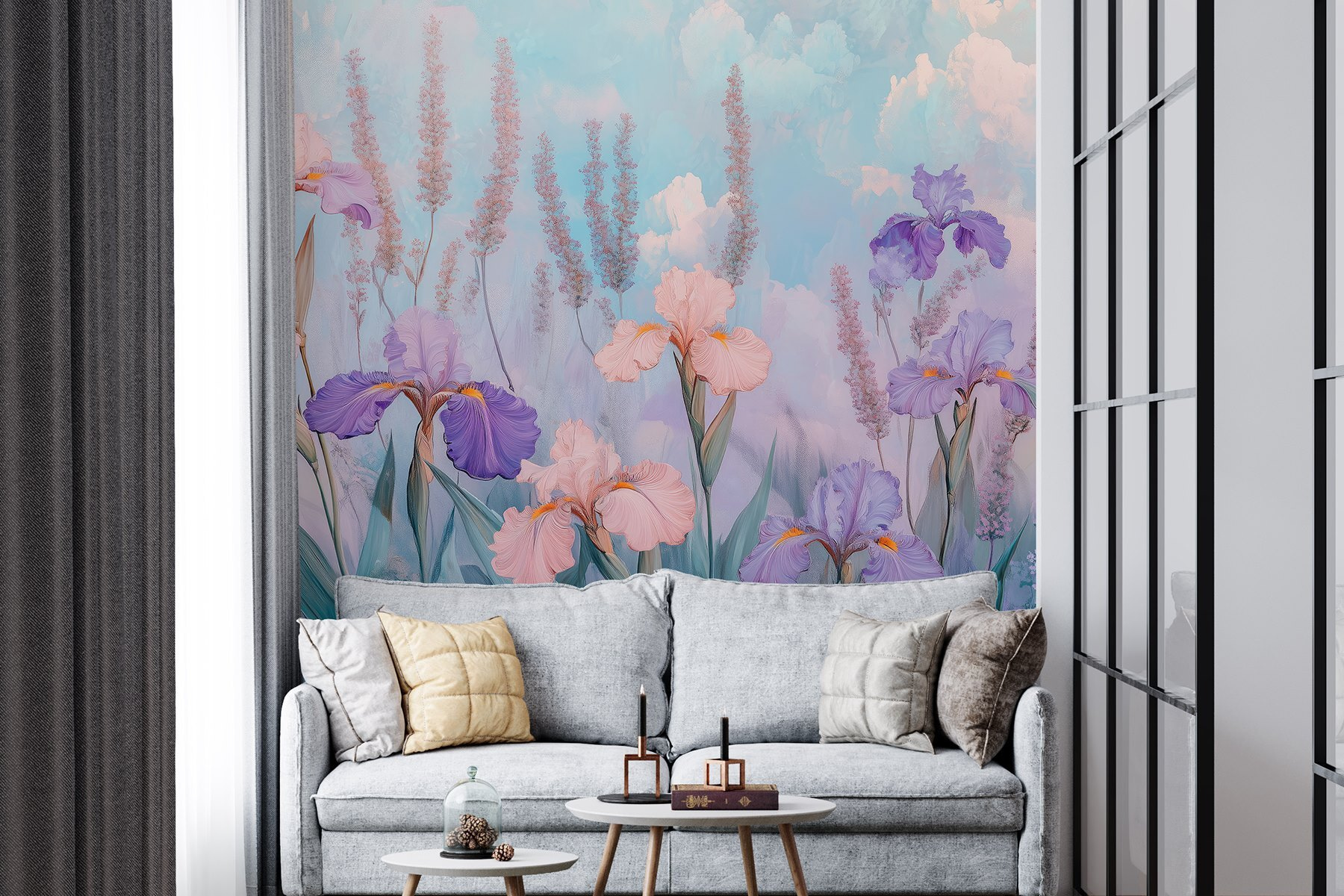 Transform any wall into a serene escape with this enchanting mural of flowers and plants. Imagine stepping into a dreamy garden every time you glance at it—those soft purples and gentle pinks whispering relaxation. It’s like having a piece of nature right in your living room, minus the pesky allergies. Picture cozy evenings spent with a book, the soft colors setting the mood for a peaceful vibe. Whether it’s brightening up a dreary space or adding a splash of charm to your decor, this mural is a delightful way to invite the outside in. Perfect for any room that could use a touch of whimsy!