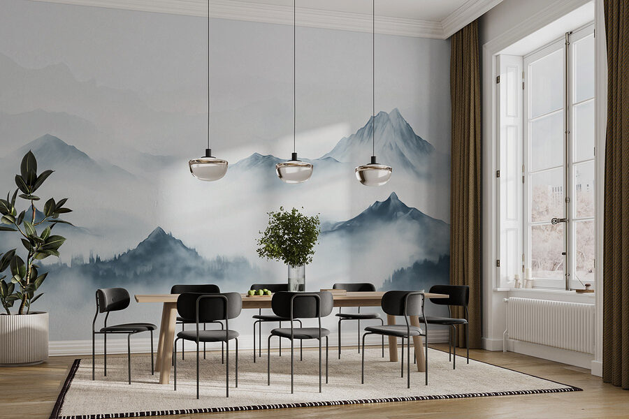 Transform any room into a serene escape with the “Foggy Mountain Range” mural. Imagine waking up every day to misty peaks that seem to whisper secrets of the great outdoors. This stunning piece invites a sense of calm, like a gentle hug from nature itself. It’s perfect for cozy reading nooks or lively living spaces—just picture friends gathered around, captivated by the cool blues and soft grays. With each glance, it might even inspire a wanderlust adventure (good luck convincing the cat to join!). Elevate your space and let the mountains share their quiet wisdom.