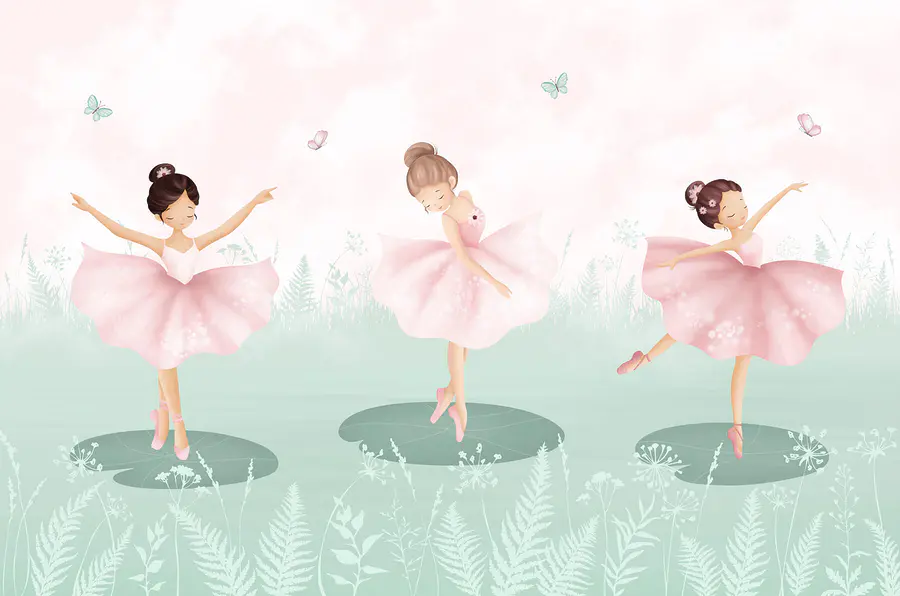 Bring a sprinkle of magic indoors with this enchanting mural of girls dancing in a field. Picture this: a sun-soaked afternoon, laughter echoing in the air, and these little dancers are twirling like they own the world. Each girl in her fluffy pink dress seems ready to leap off the wall and start a joyful conga line around the room. It’s the perfect backdrop for a child’s play space, charming enough to inspire dreamers and free spirits. Add a touch of whimsy that’ll prompt daily smiles and maybe a dance party or two. Who wouldn’t want to step into a world where butterflies flutter and laughter reigns? Perfect for brightening up any corner, this mural will invite a sense of wonder that’s oh-so-hard to resist.