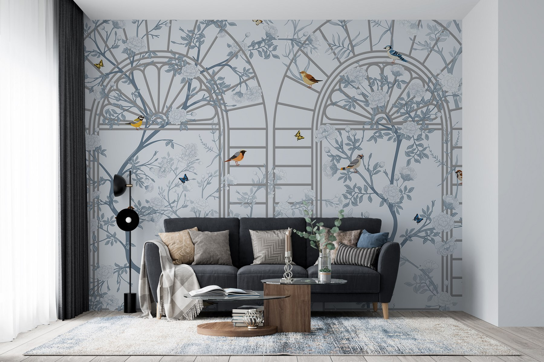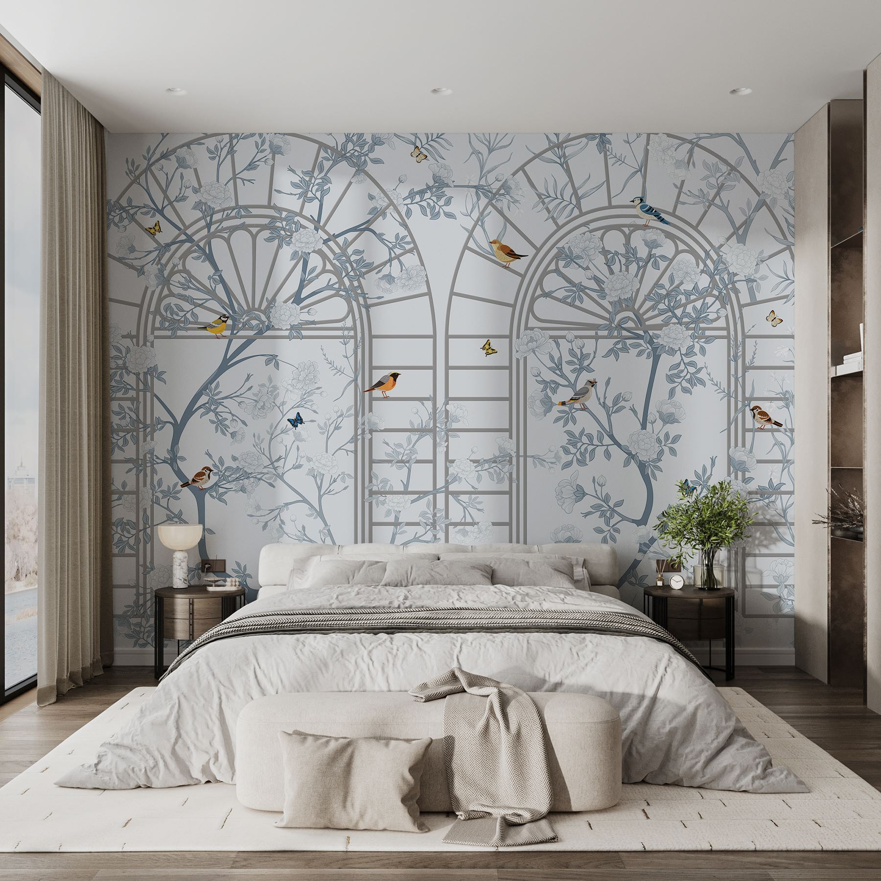 Transform your space with this stunning wall mural featuring a dreamy blend of birds and blooms. Imagine the serenity it brings, almost like a soothing breath of fresh air that whispers, “Hey, relax a bit!” The delicate ladder and intricate floral design create a light, airy vibe that feels like stepping into a tranquil garden—even if the only thing growing in your home is that old plant on the windowsill. And those birds? They look ready to chat, as if they’re singing the sweetest melodies just for you. Perfect for a cozy reading nook or an inviting entryway, this mural adds a splash of personality that says, “Life’s a little whimsical, and that’s just fine!” Who wouldn’t want that?