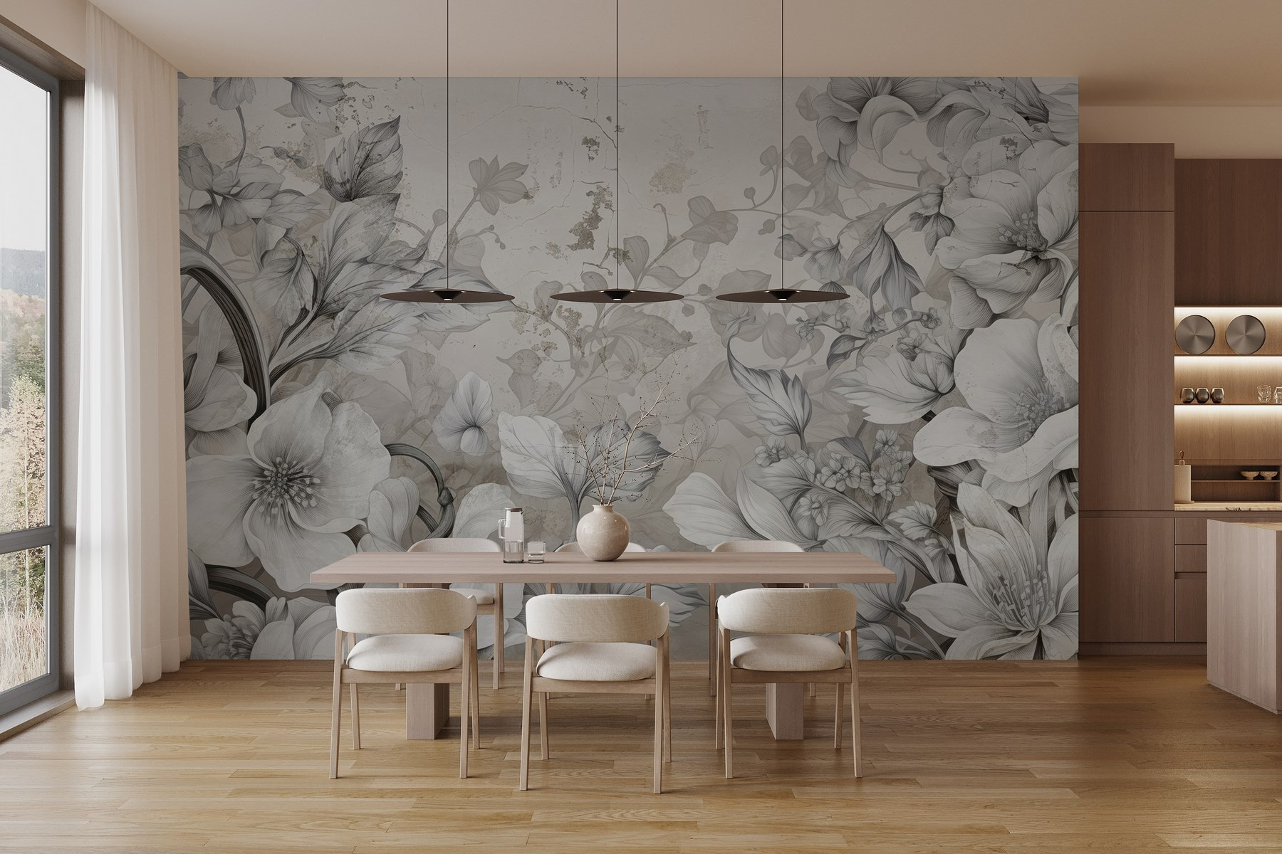 Transform any room with the captivating beauty of “Delicate Blooms in Soft Grayscale Hues.” This mural whispers elegance, wrapping your space in a gentle embrace of watercolor florals. Imagine waking up to these soft petals gracing your walls, evoking calm vibes and inspiring creativity. Every brushstroke tells a story, making it perfect for a cozy reading nook or a stylish living room. No loud colors here—just delicate shades that breathe life into your decor. It’s like bringing a serene garden indoors, minus the pesky pollen. Don’t be surprised if friends stop by just to admire the magic!