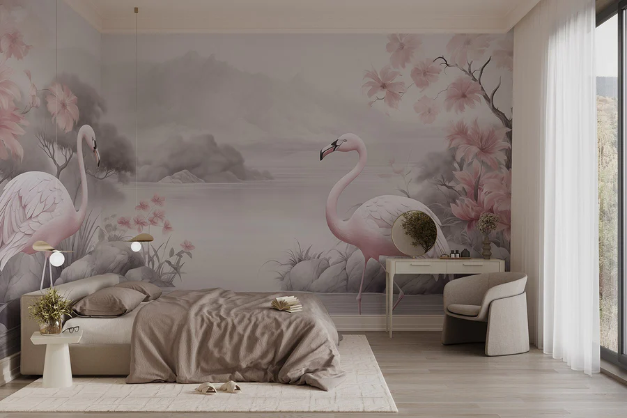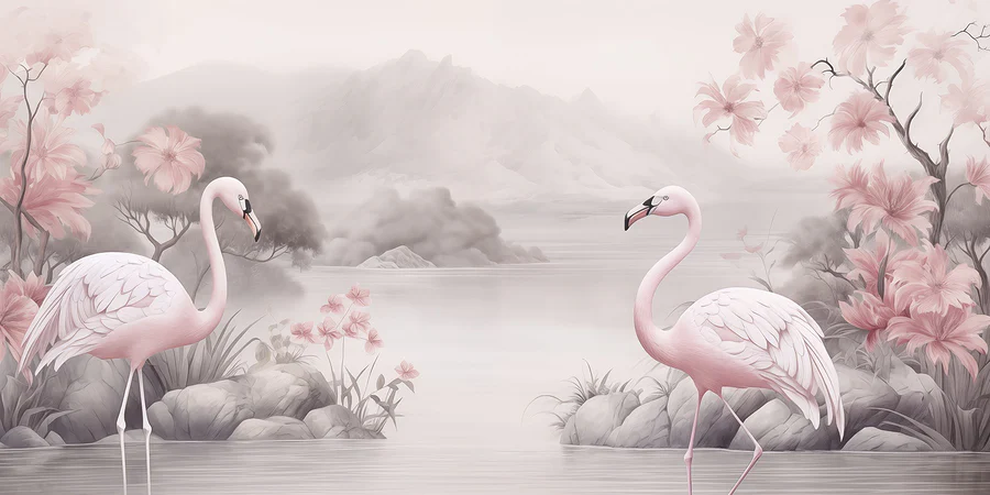 Transform your space into a serene oasis with the “Flamingos in a Lake” mural. Picture this: soft pinks dancing against a misty backdrop, where elegant flamingos glide gracefully across tranquil waters. It’s like a breath of fresh air right on your wall—who wouldn’t want a slice of nature indoors? Imagine sipping tea while admiring the beauty of a Japanese garden, all from the comfort of your living room. This mural doesn’t just decorate; it invites calm and sparks daydreams. Perfect for those who love unique decor, it might just inspire your next adventure. Who knows, maybe you’ll even start planning a tropical getaway!
