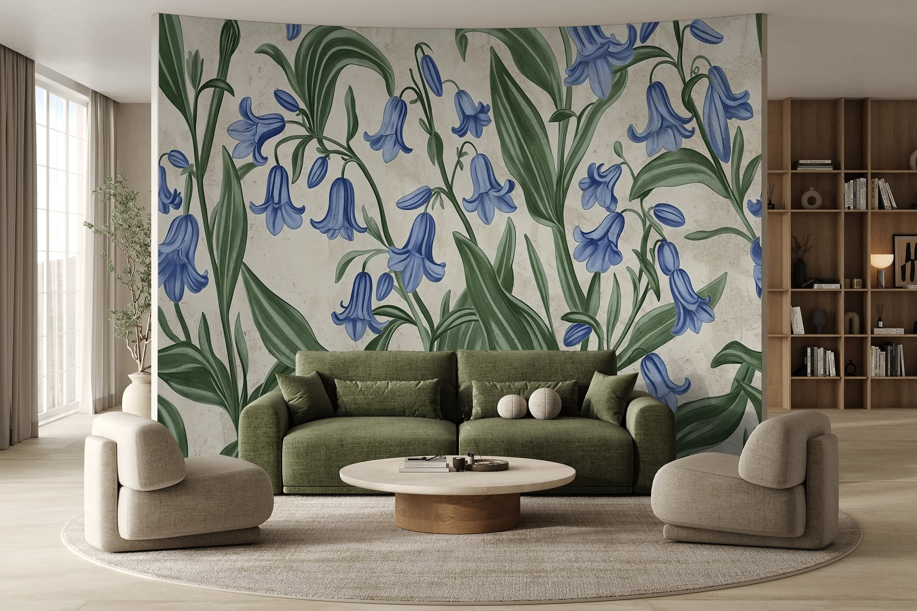 Transform any room with this stunning mural, “Floral Beauty in Soft Blue Tones.” Imagine stepping into a serene garden, where delicate blue flowers dance across the walls—complete with lush green leaves that feel like a gentle breeze. Whether it’s a cozy nook, your home office, or a serene bedroom, the calming hues create an inviting atmosphere. It’s like having a piece of nature at home without any pesky bugs. Perfect for those days when you just need a little zen. So go ahead, let the flowers bloom on your walls and brighten up your space!