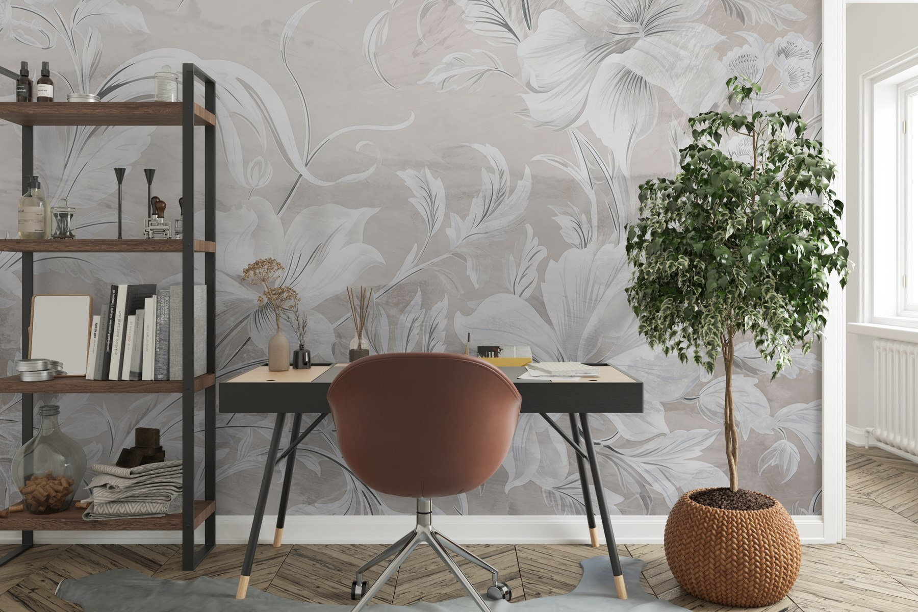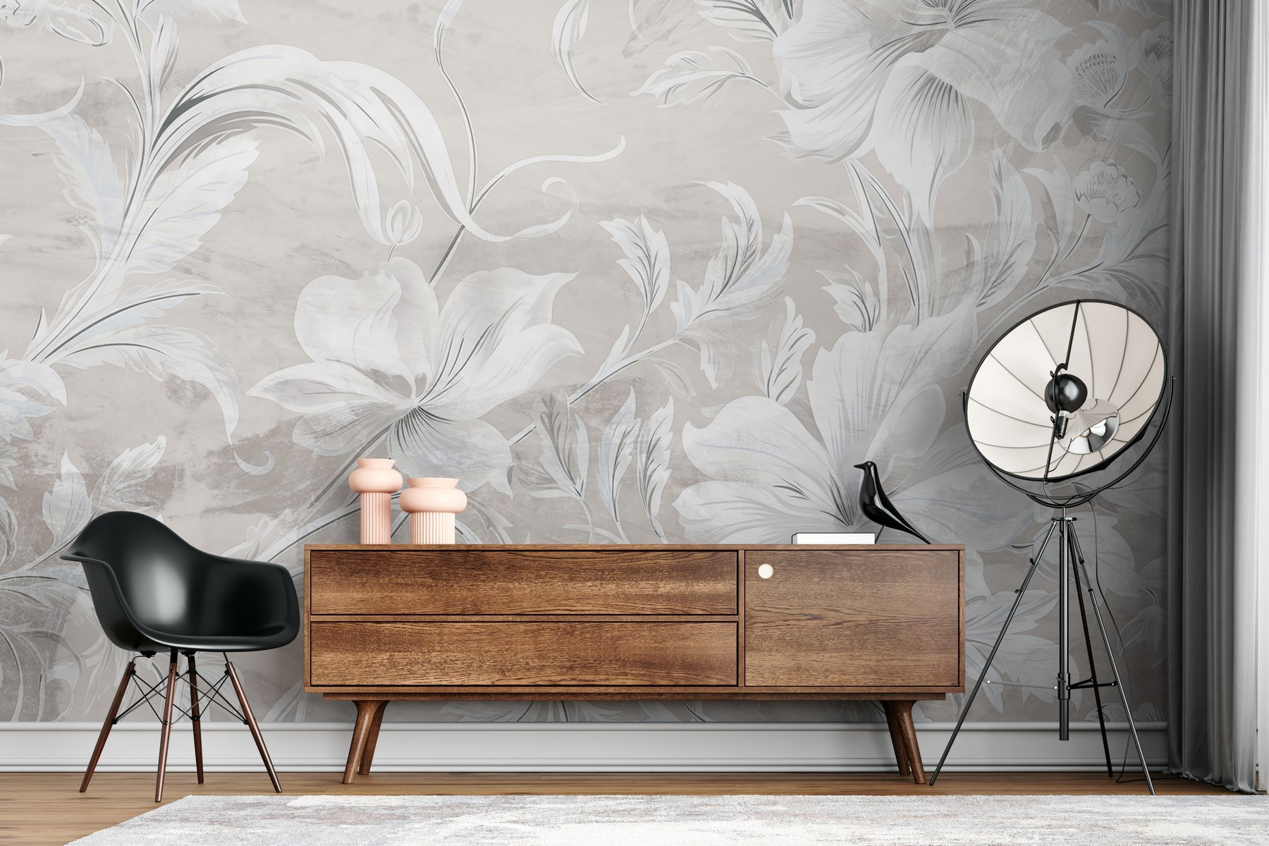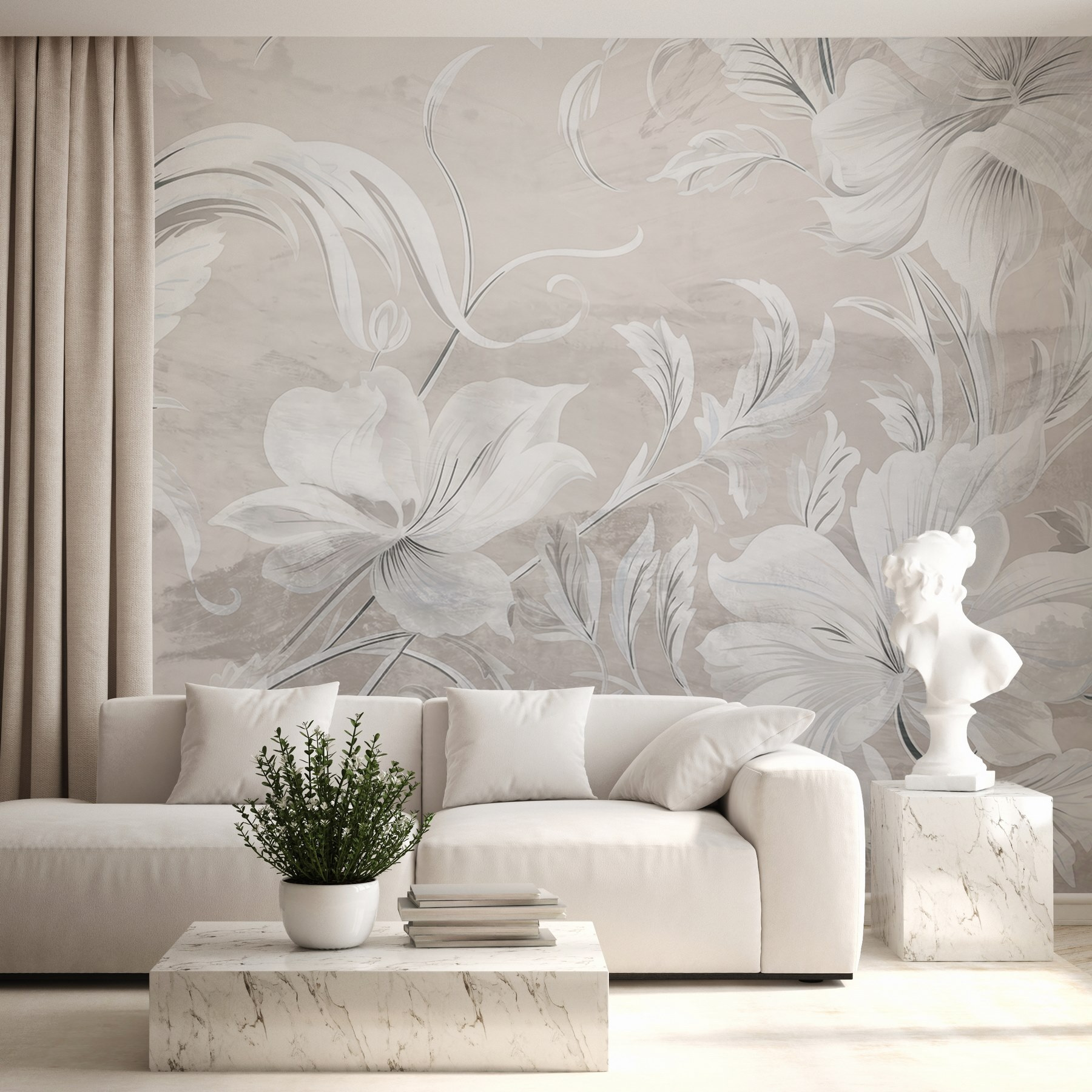 Transform any space with this enchanting white and grey floral mural. Imagine stepping into a serene garden every day—soft petals dancing across your walls, creating a gentle atmosphere. This lovely design effortlessly brightens up any room, inviting a sense of calm and tranquility. Perfect for cozy reading nooks or stylish dining areas, it whispers elegance without shouting for attention. Picture sipping tea on lazy afternoons, the flowers almost touching your heart. A delightful touch that makes walls feel alive—who wouldn’t want that? Just don’t forget to stop and smell the roses!