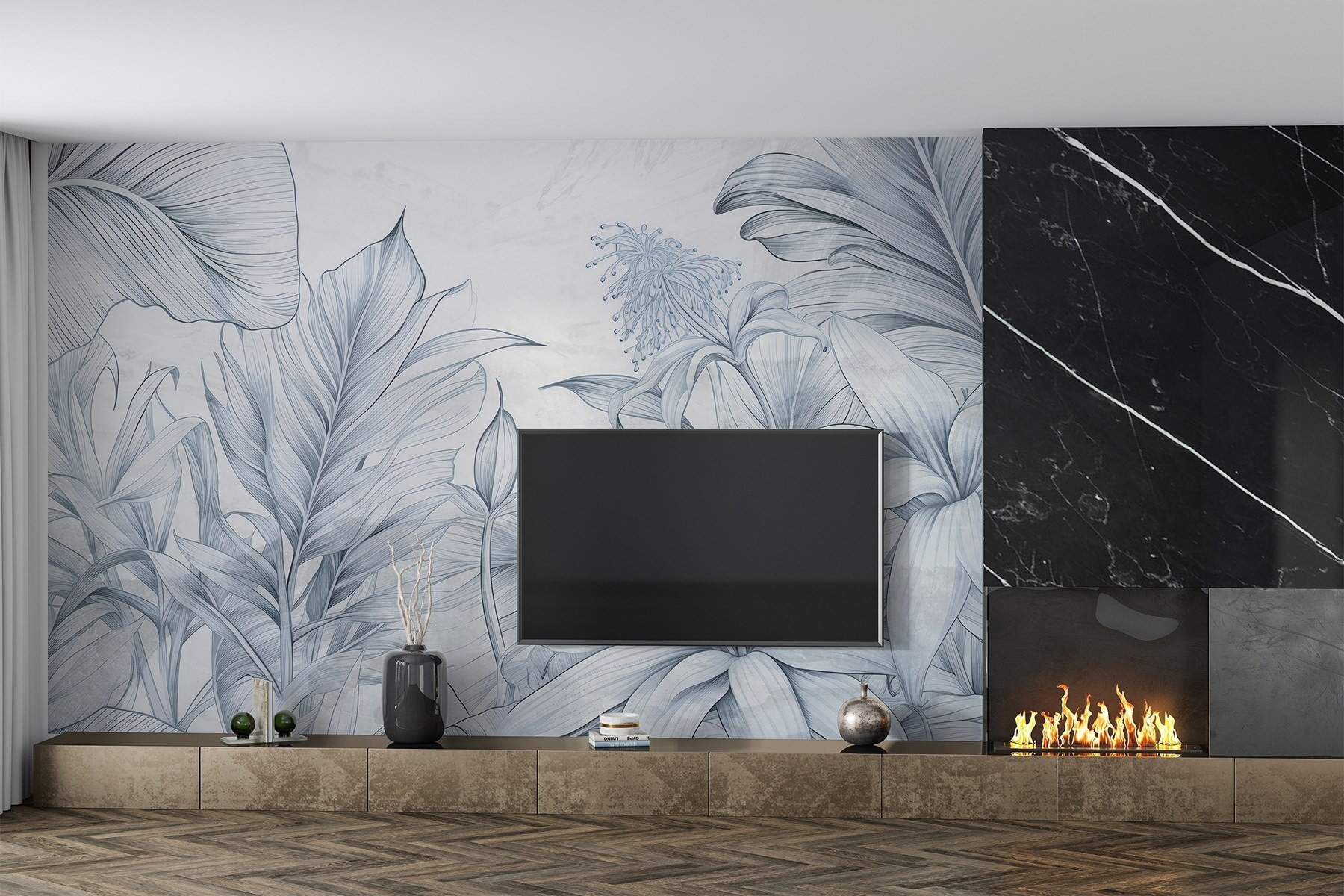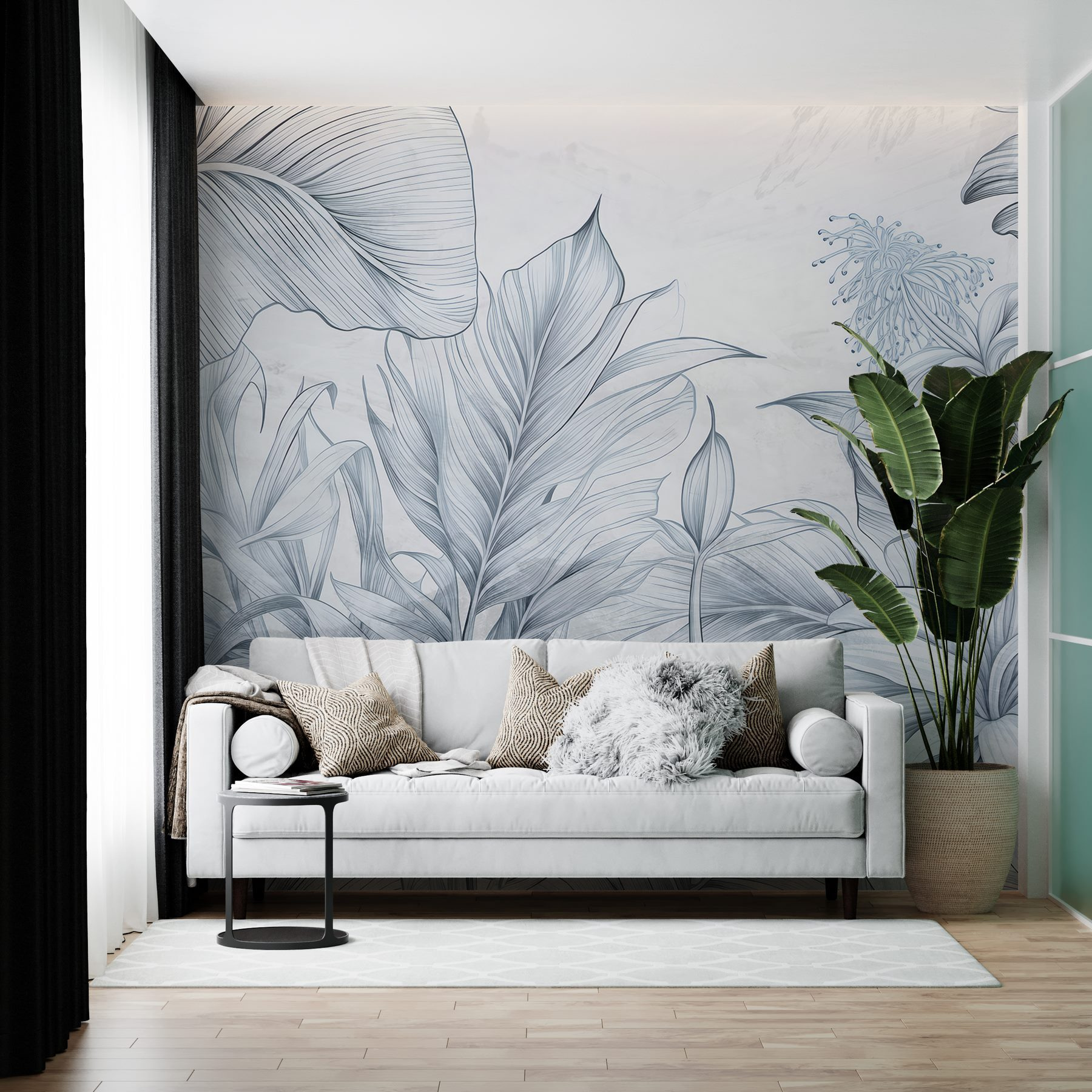 Bring the beauty of nature indoors with this stunning wall mural featuring a lovely drawing of leaves and flowers. Imagine stepping into a tropical paradise right in your living room. The subtle tones and intricate details invite tranquility, making it perfect for those lazy Sunday mornings when all you want to do is sip coffee and daydream. Friends will compliment your style, and honestly, who doesn’t love some botanical flair? It’s like having a garden that never needs watering—just pure beauty to enjoy every day! Transform any space into an oasis of calm and creativity with this unique piece.