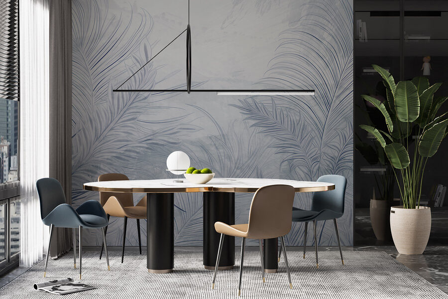 The installation method depends on the height of the wallpaper. For wallpapers up to 3.60 meters in height, they should be installed end to end. For wallpapers over 3.60 meters in height, they should be installed with an overlap, followed by cutting the joint on the wall.